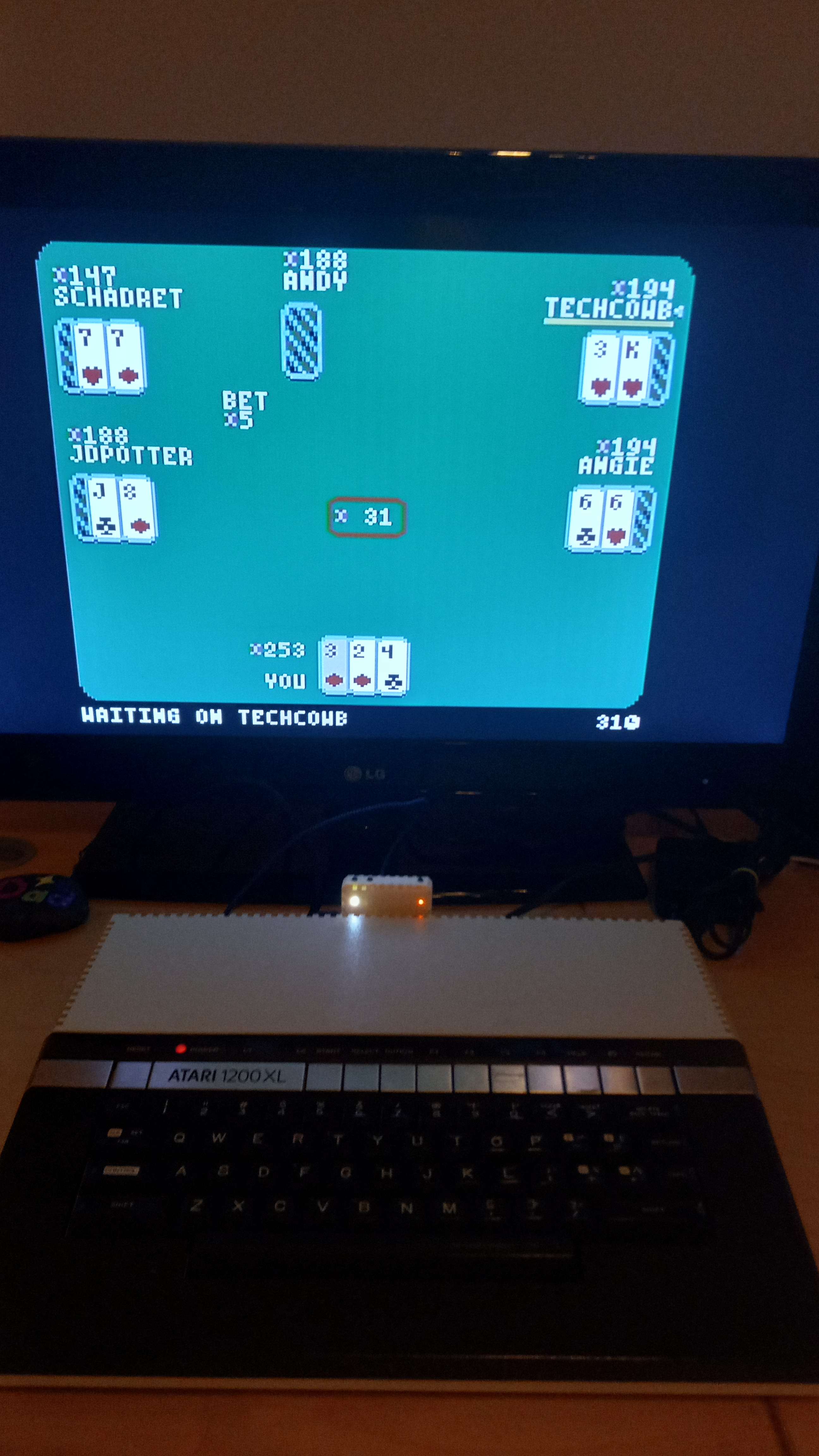 First Annual #FujiNet Game Day proceeding quite nicely with 5 Card Stud Poker! We have #Atari8bit people in both the Den and the Basement! Great job, guys!
