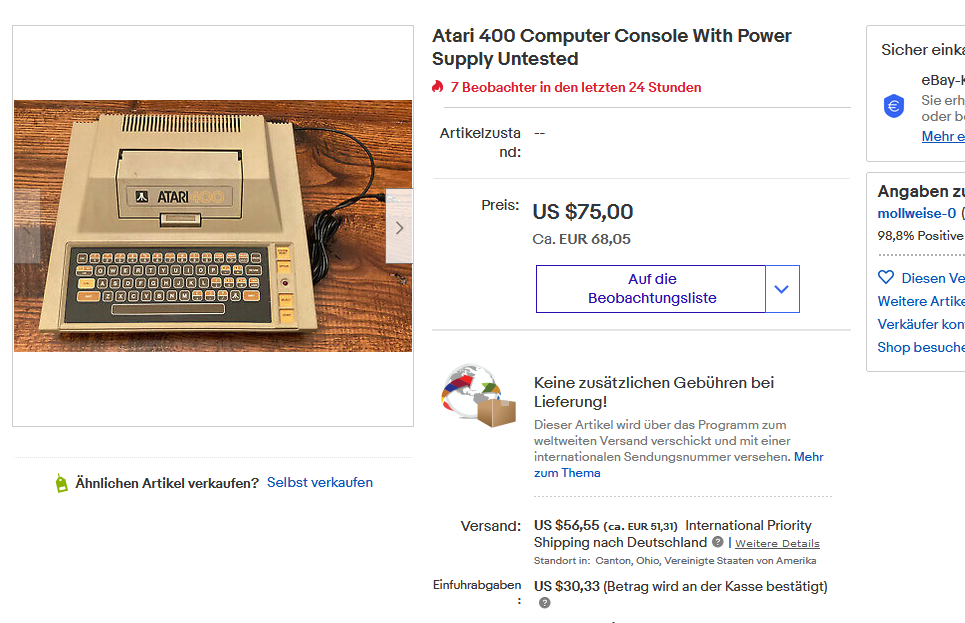Auf Ebay gibts zur Zeit einen ATARI 400 aus den USA für Sofortkauf 75USD (oder Preisvorschlag)