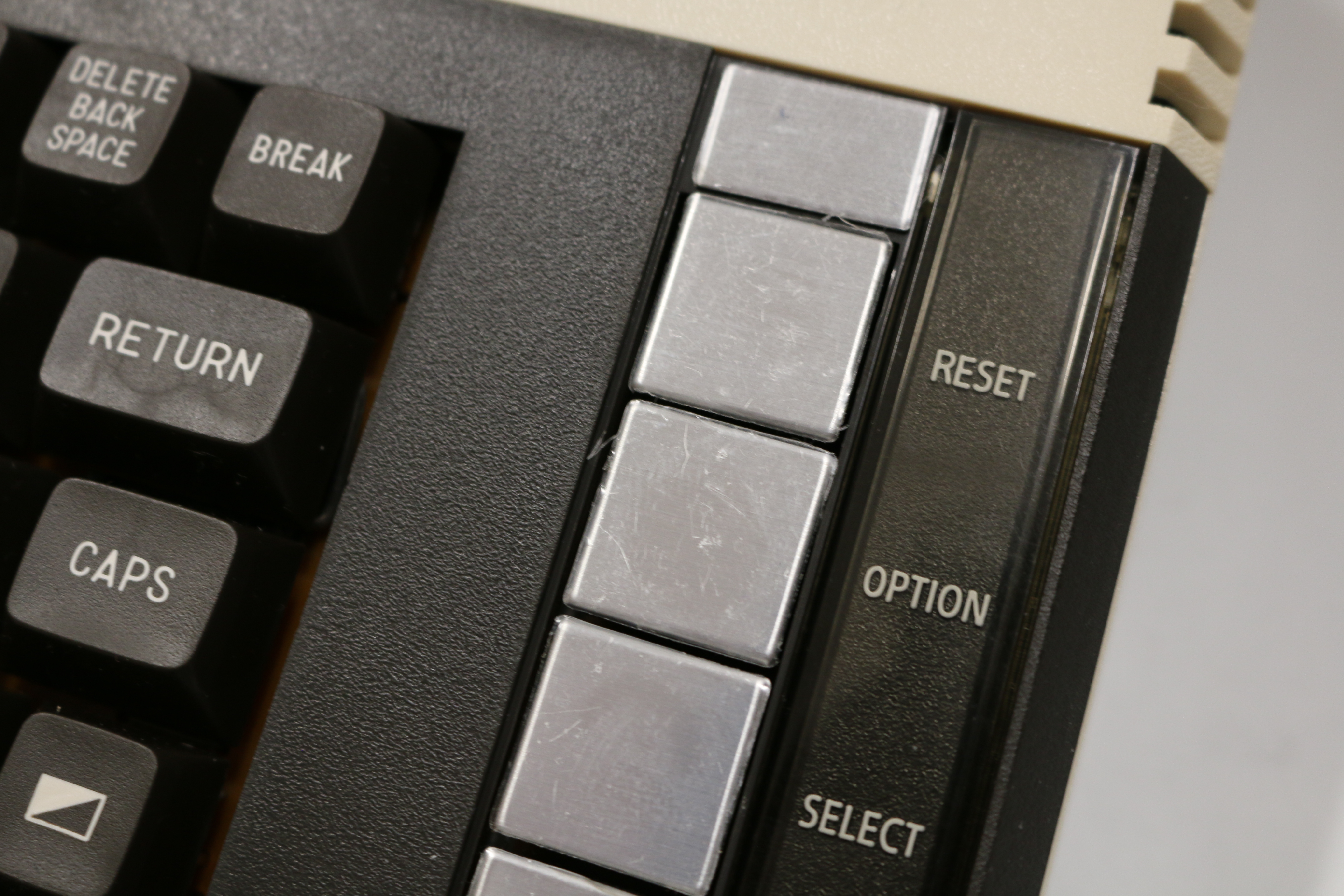 Tastatur, Modulport, Erweiterungsport, alle Joystick und Paddle Eingänge, Netzteil, SIO-Schnittstelle.