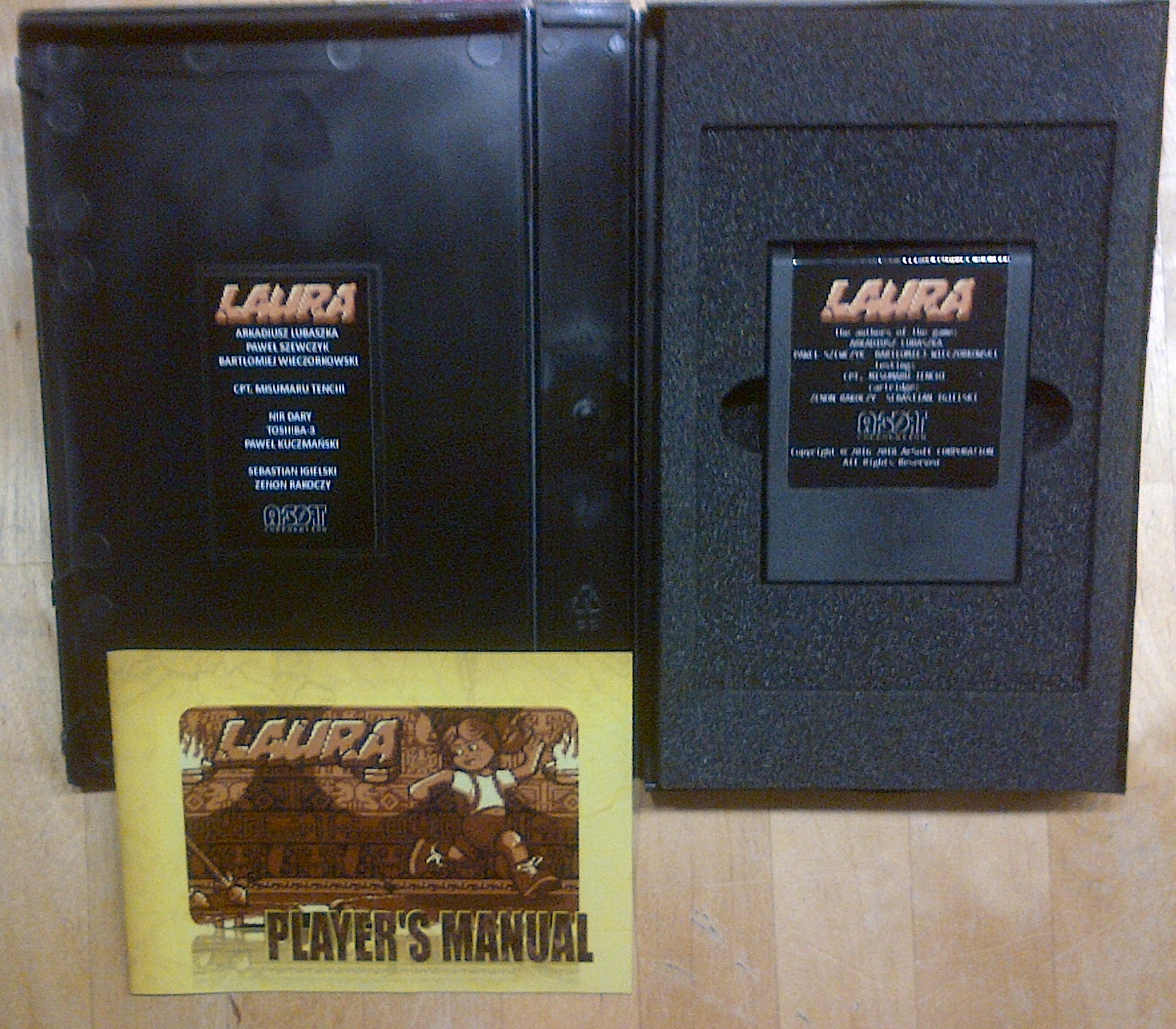 Modul (von ArSOFT) + gedruckte Anleitung in VHS-Hülle mit Schaumstoffeinlage.