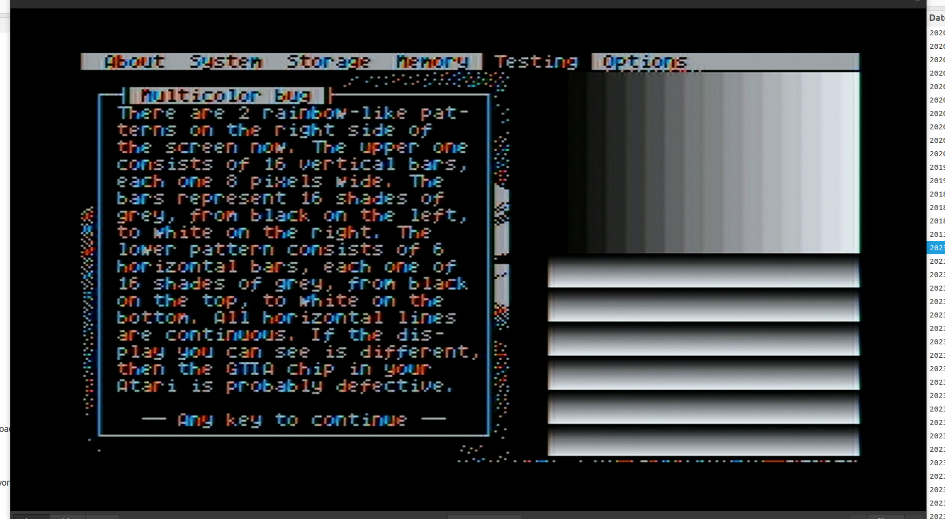 We will see that gap on the middle of grey scale was eliminated. More over, text is really sharpen than before. Above screenshots were taken from my Composite->HDMI->USB grabber - that's so many colors you see :-). Below I added a few real photos make with A800XL NTSC (Yes, it's working fine with each system!) and FF v1.0, so that you can evaluate the results yourself...