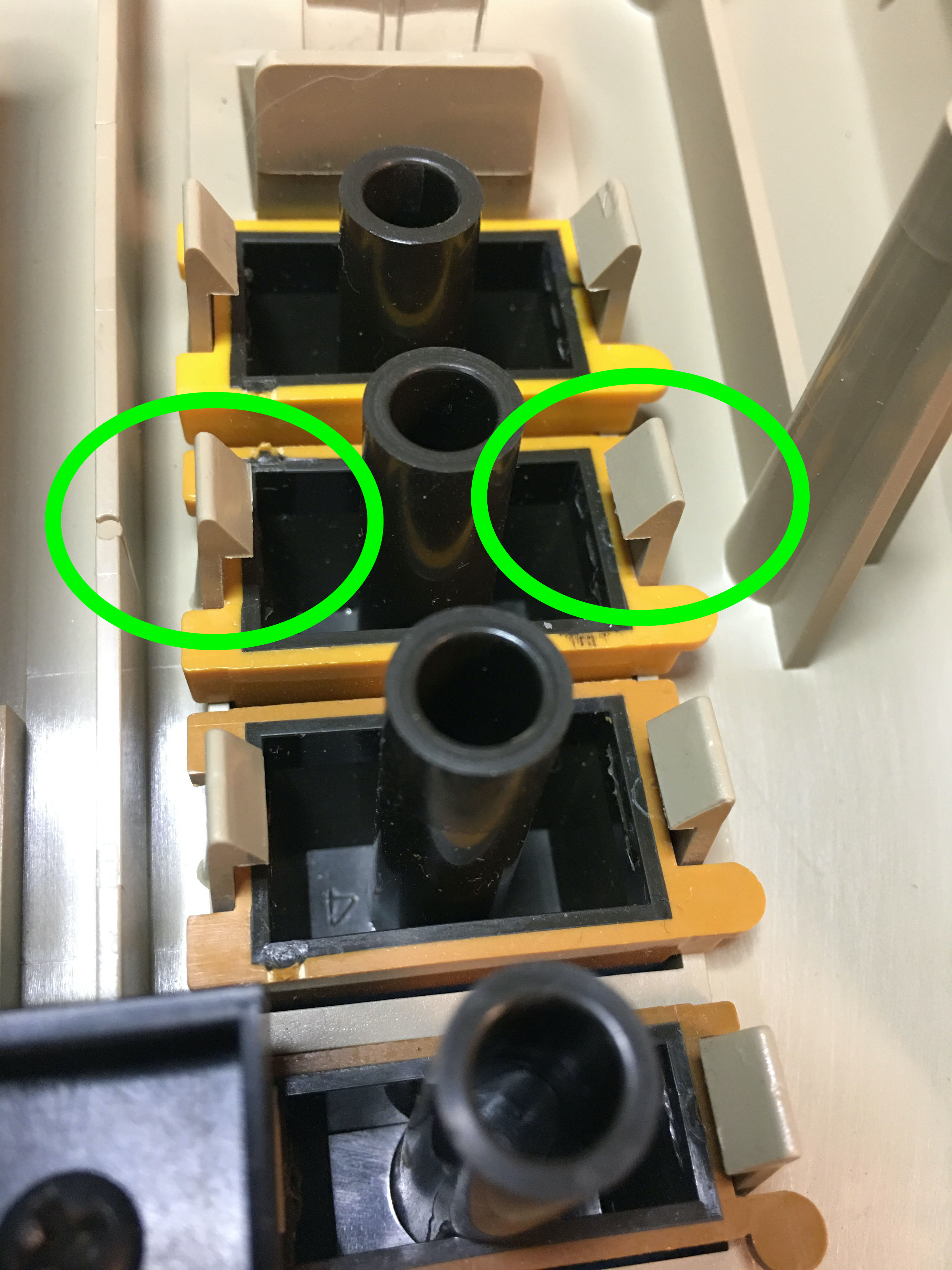 Ich habe in meinen 800er eine SCCC eingebaut und habe jetzt noch das Problem das die Select Taste mechanisch klemmt. Sie bleibt in der "Gedrückt"-Position hängen. Der Taster schafft es nicht Sie zurück zu schieben. Ich habe mal zwei Bilder angehängt. Da sieht man das der Taster zwischen den Haltenasen eingeklemmt ist. In der anderen Position sieht man das er im Gegensatz zu den anderen fast kein Spiel hat, das stört aber nicht. Wenn ich die Haltenasen gaaanz leicht auseinander drücke läuft der Taster ohne zu klemmen.