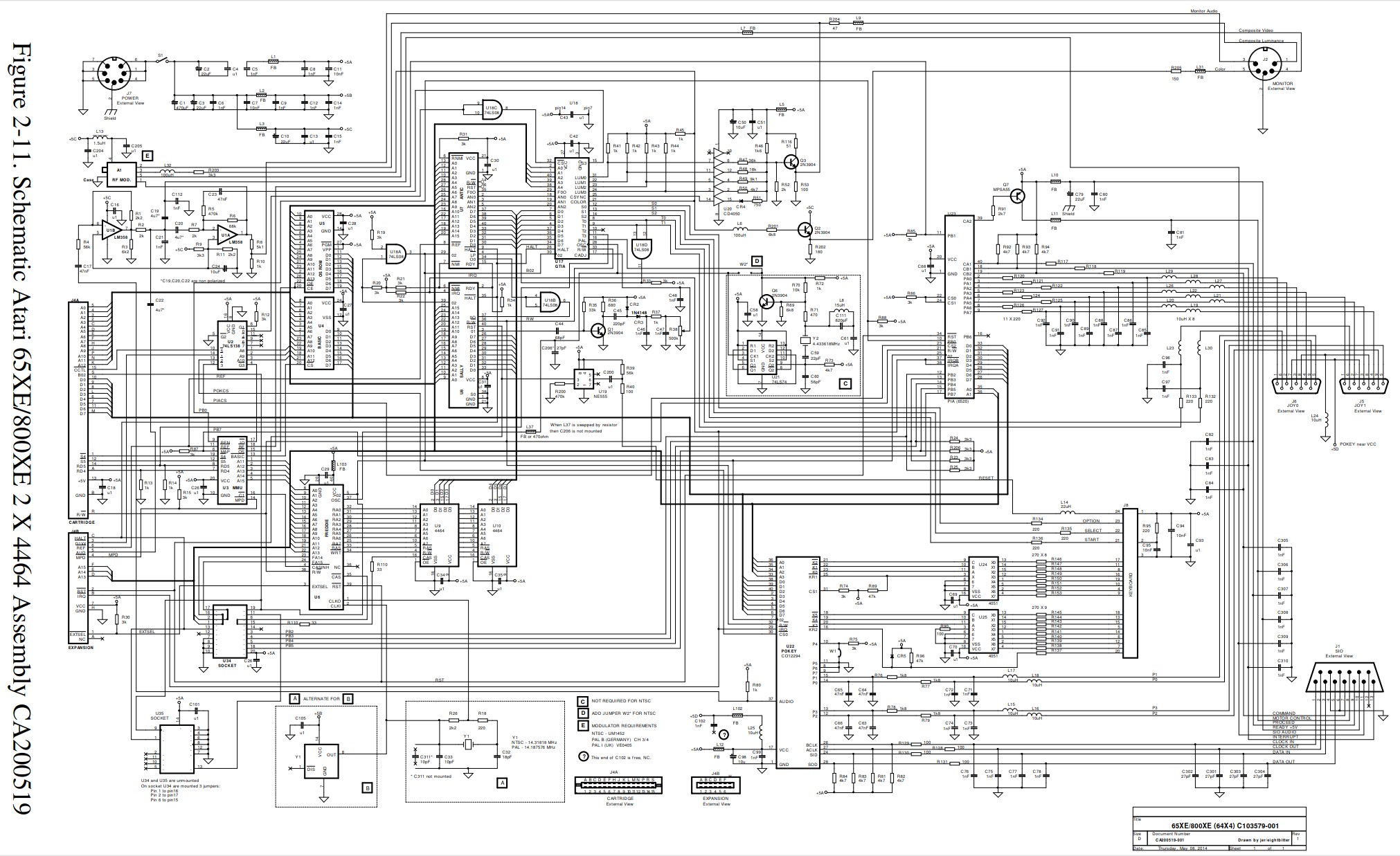 Leider gibt es für das Board keinen Schaltplan und auch keine Bezeichnung der Bauteile um sie dem Original XE Schaltplan zuzuordnen. Viele der Bauteile finden sich aber in etwa an der selben Stelle wie beim Original. Da hilft dann leider nur mühsames Nachverfolgen der Leiterbahnen.