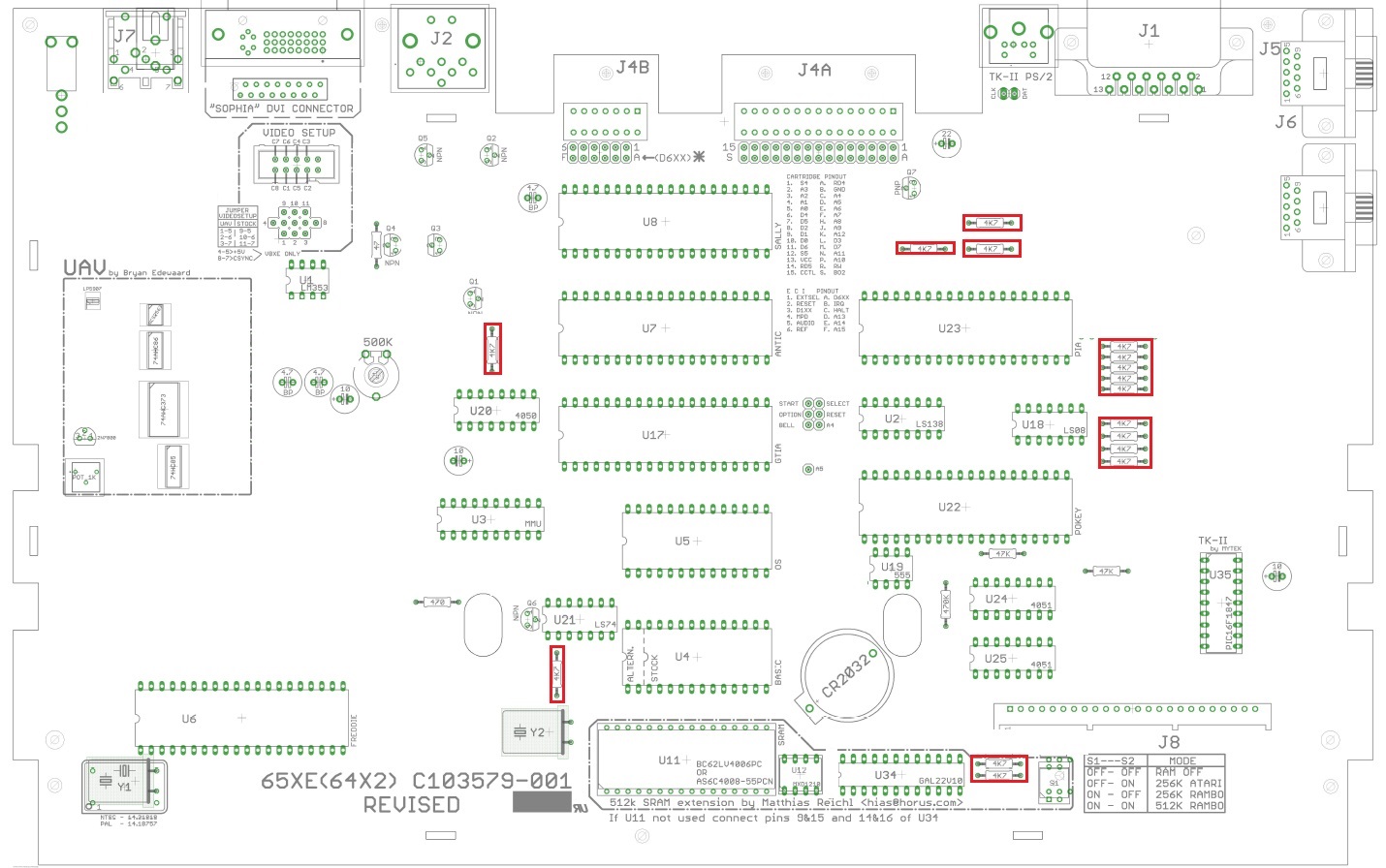 In der BOM die ich und Olix erstellt haben, sind 2x47K drin - genau die zwei unter dem Pokey und schräg rechts daneben