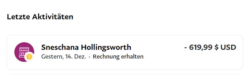 Habe gerade eine EMail von Paypal über eine Rechnung von 619,99USD erhalten.