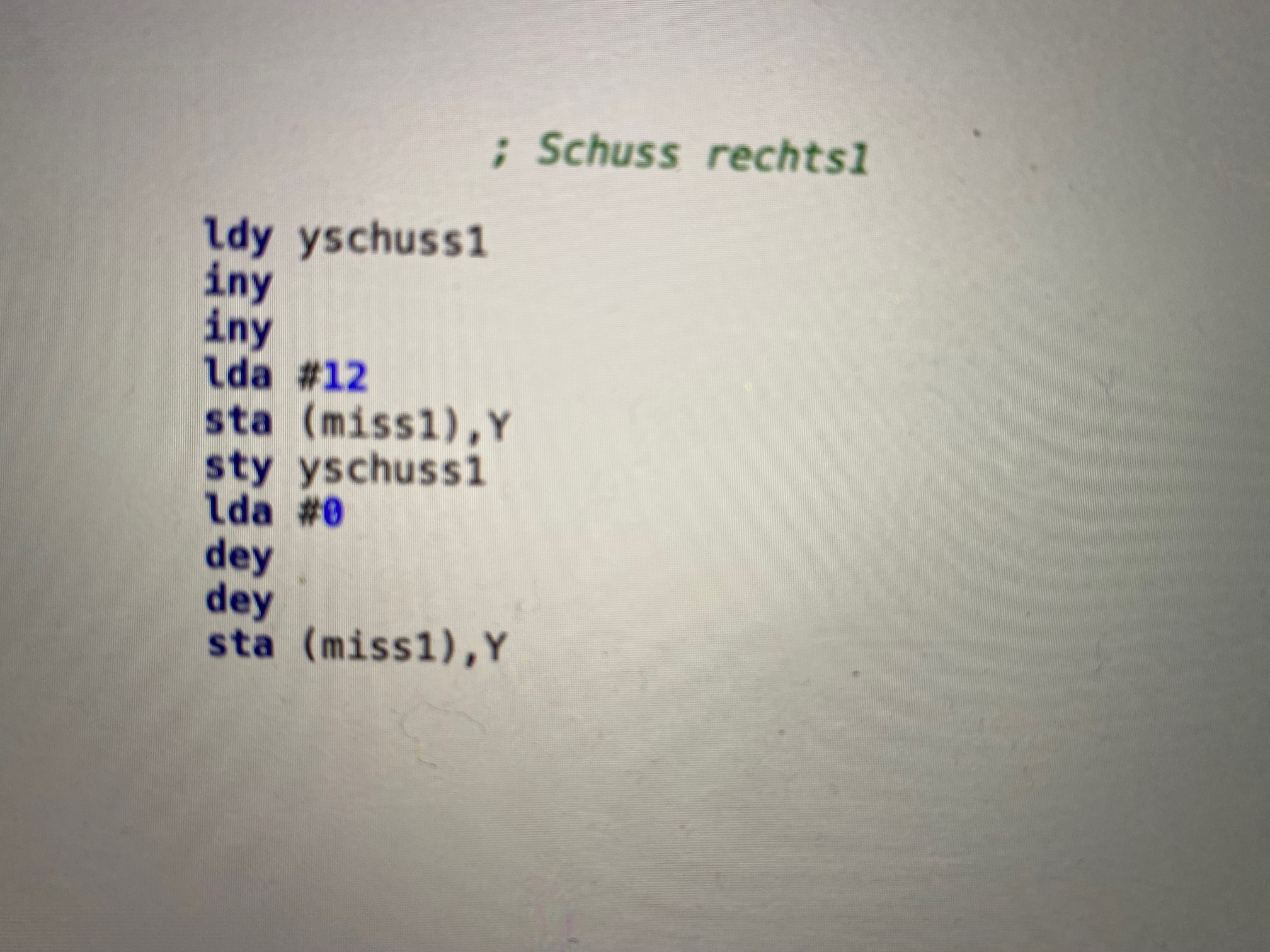 Wenn nun im Hauptprogramm festgestellt wird, dass geschossen wurde, bereitet man einen freien Missile vor, indem man ihn an die richtige Position setzt und setzt sta missile,x auf den y-Wert des Schusses. Die Routine erkennt nun dass der Missile bewegt werden muss.