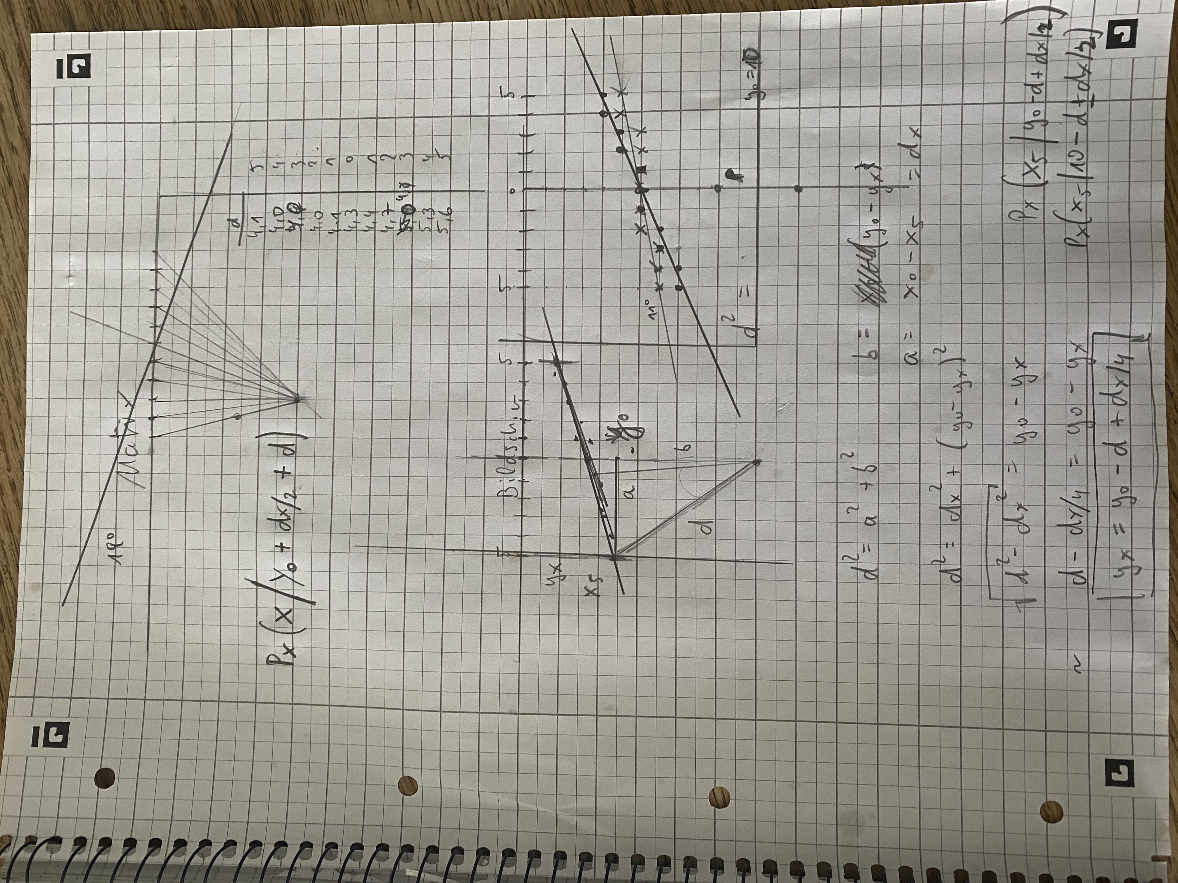 und dabei ist für die Darstellung der entsprechenden Wandteile in Abhängigkeit von der Perspektive und des jeweiligen Sichtstrahles eine für mich neues Formel rausgekommen: P(x / y0-d+dx/2)