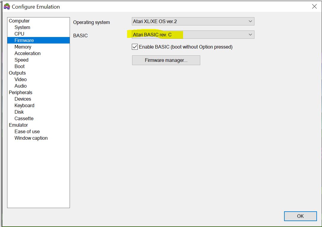 Geh in die Konfiguration von Altirra rein => Firmware => Firmware manager ...
