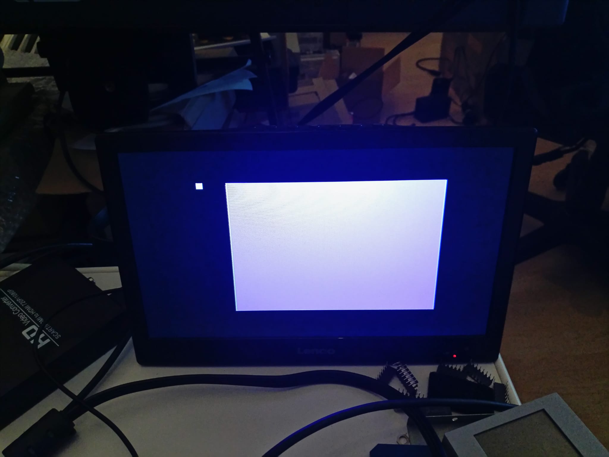 Aber weiterhin das Problem, dass der Rechner in ein "4/5´tel Fenster" mit Cursor "außerhalb bootet aber tot ist und erst nach dem RESET normal ins Basic geht :( .