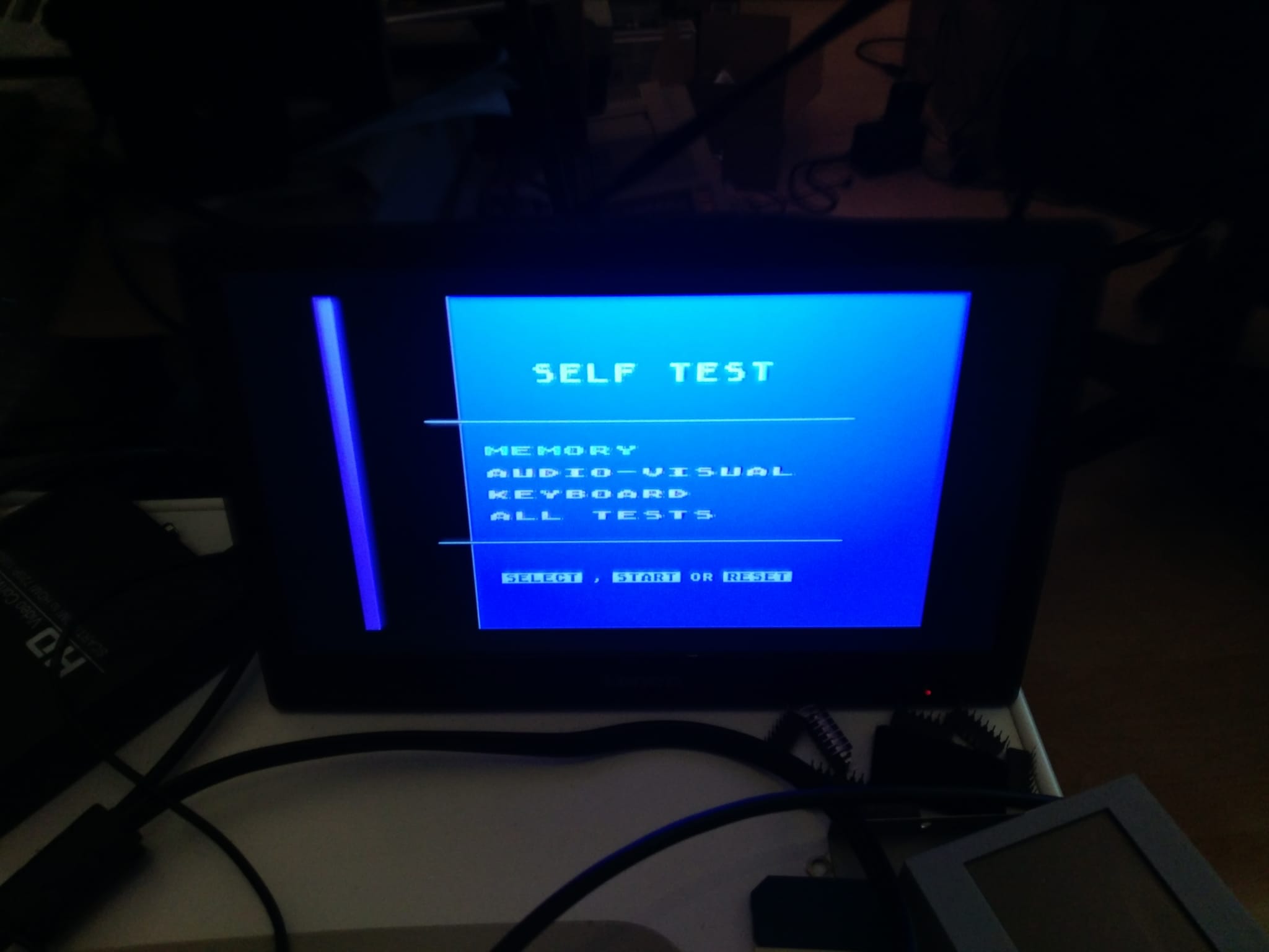 ....und wenn man einmal RESET drückt, startet er (manchmal) ins Basic oder er geht in den Selftest-Modus aber mit Grafikfehlern