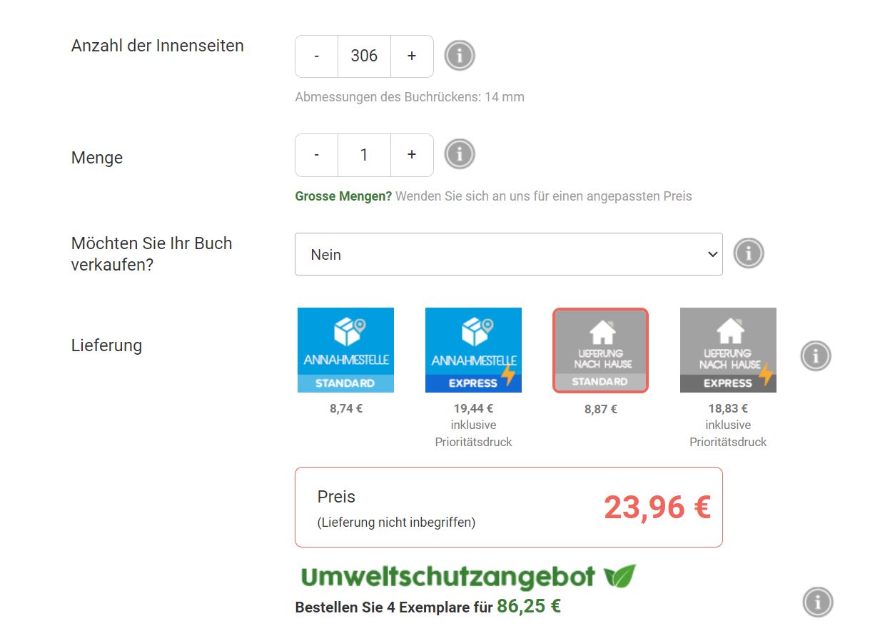 Ich habe schon einen Anbieter gefunden und auch schon einen zweiten Interessenten, der auch ein Buch haben möchte,