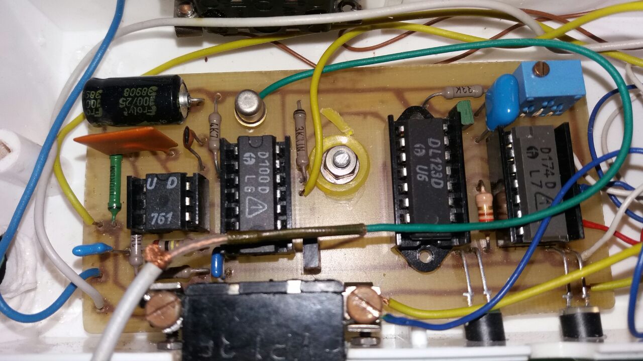 Prima, einen Flipflop DL074D HFO kann ich schon mal erkennen. Das ist der längs eingebaute IC. Bei den anderen IC kann ich nur raten. Der 6-beinige wird ein OPV/ OpAmp sein B?? irgendwas.