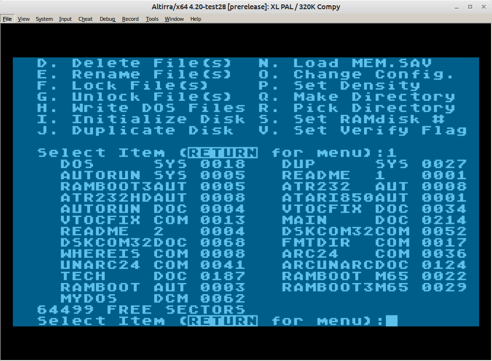 Das Tool macht dir dann eine Directory (und VTOC) wahlweise im MyDOS oder SpartaDOS Format.