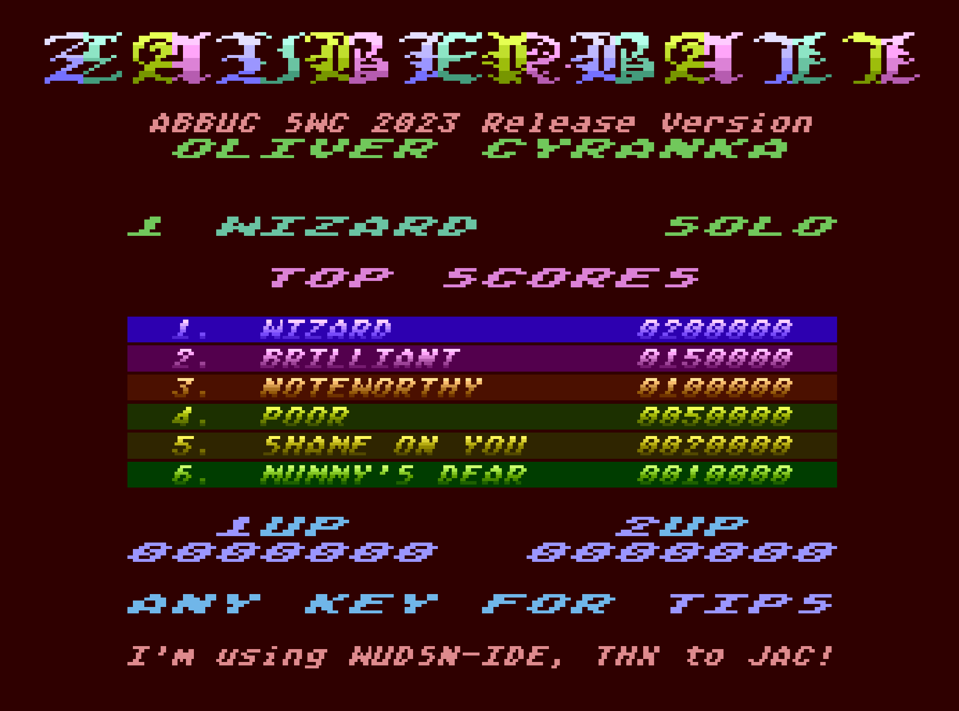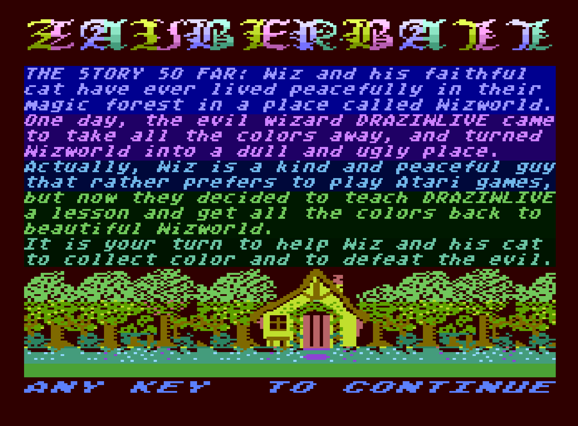 hier ist nun die Release-Version von Zauberball'23, meinem diesjäriger Beitrag zum ABBUC SW-Contest 2023. In der Release Version gibt es einige wichtige Ergänzungen, nämlich eine animierte Szene im Haus des Zauberers, und eine Abschlusss-Szene wenn alle Levels eingefärbt wurden. Ausserdem endet das Spiel sobald alle Spielebenen komplettiert wurden. Das Spiel hat also einen definierten Schluss und kann "gewonnen" werden.