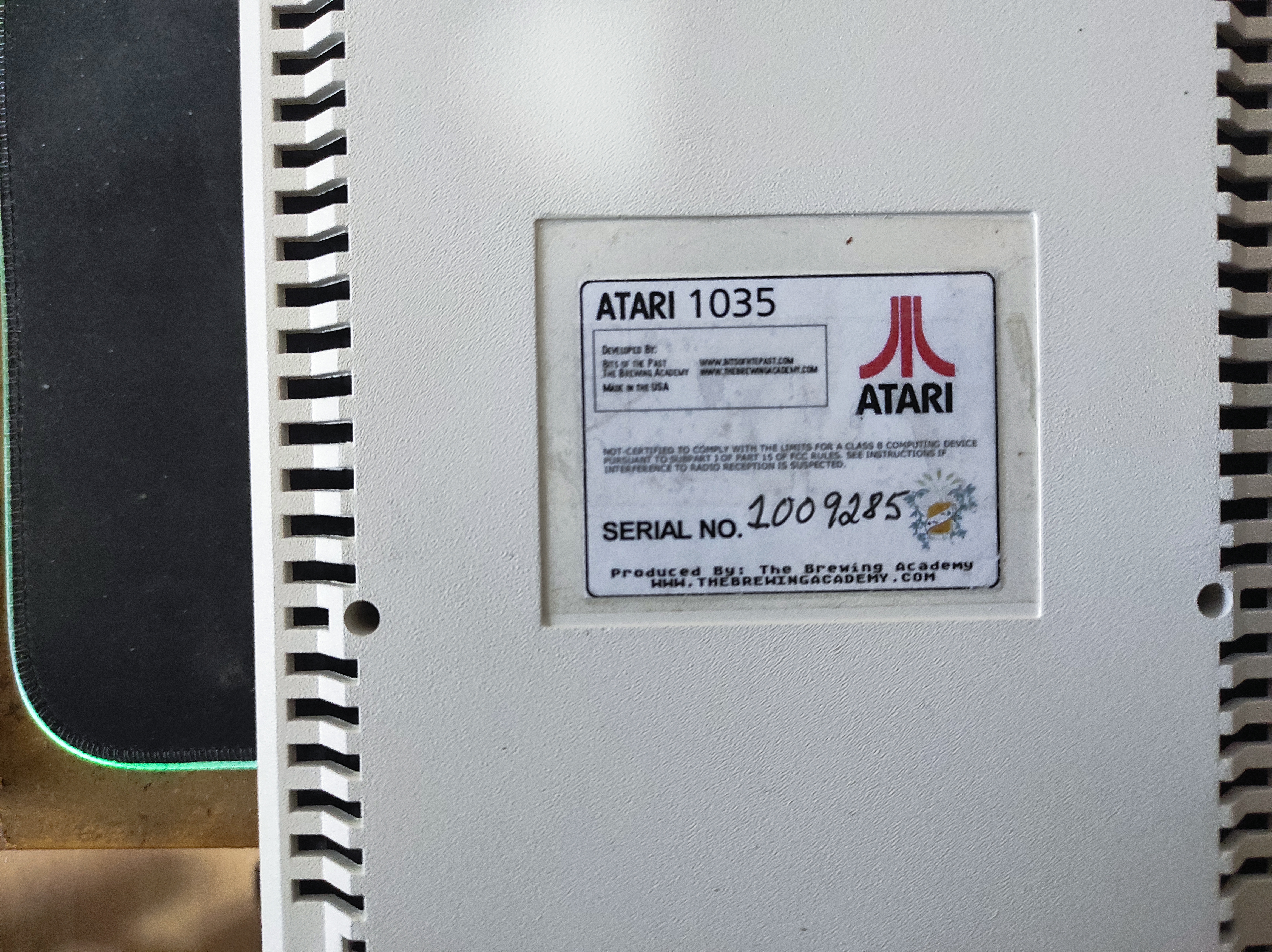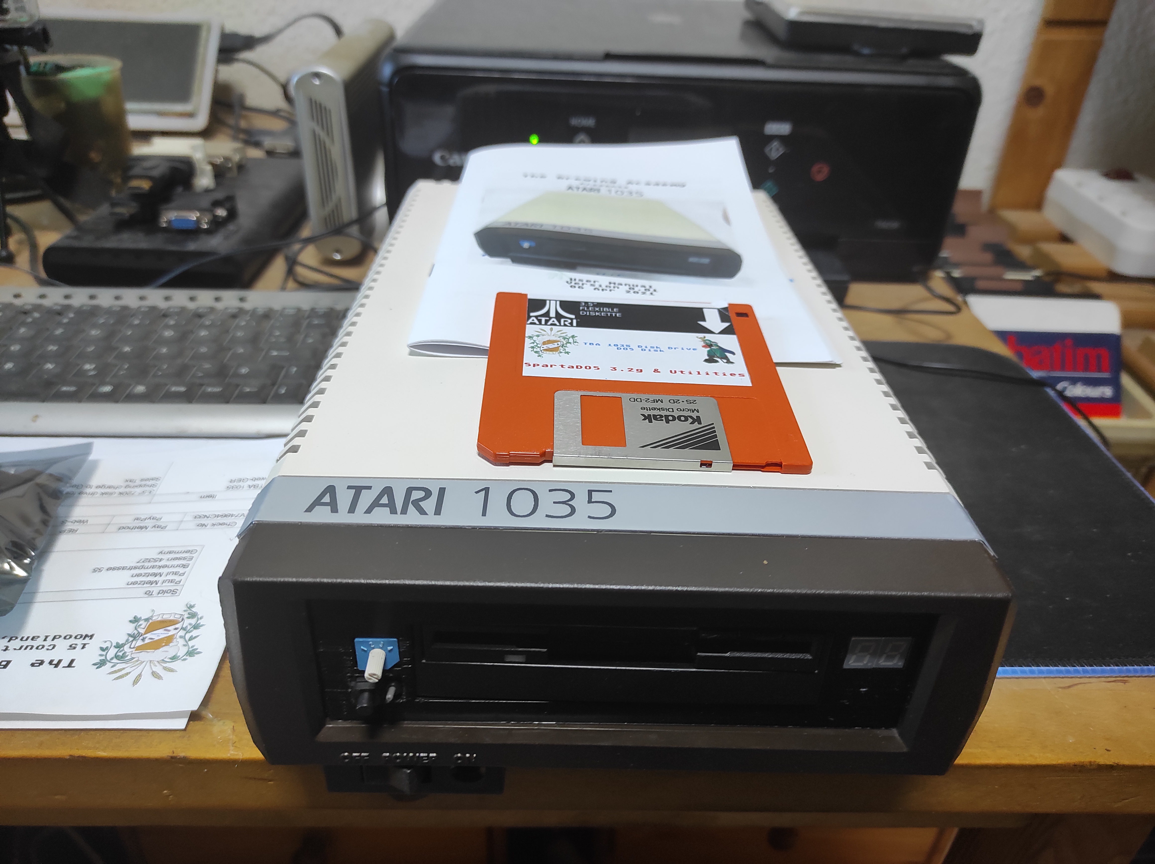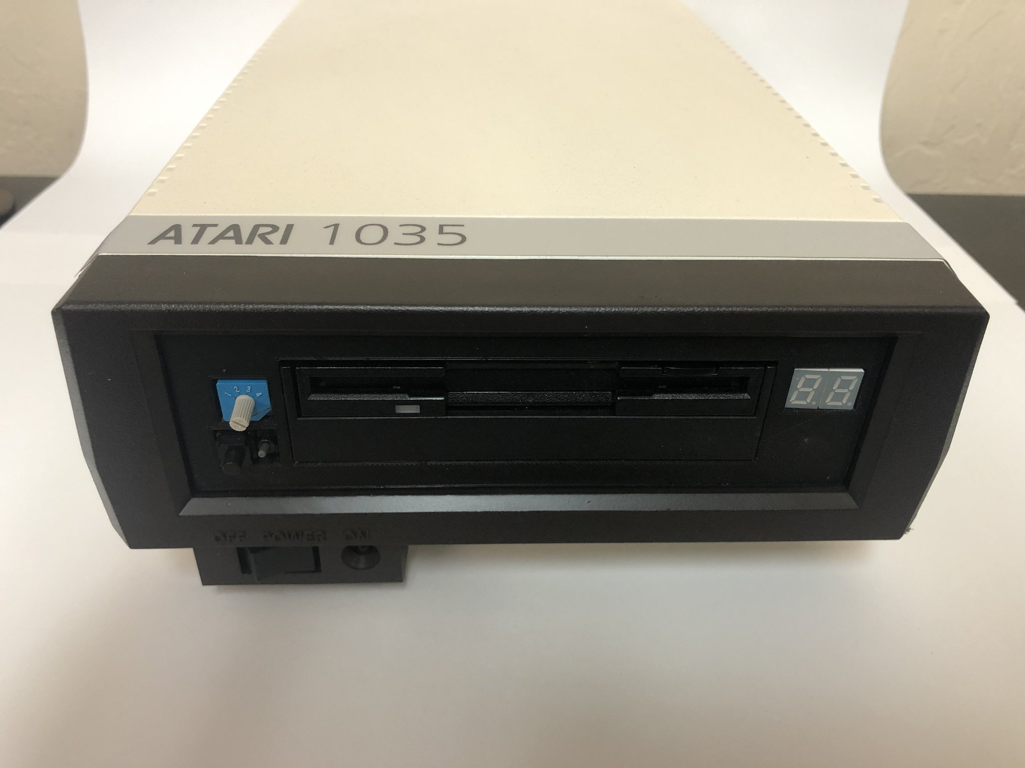 Oben auf das Laufwerk wurde hübsch die Aufschrift ATARI 1035 angebracht, was sehr vernünftig aussieht.
