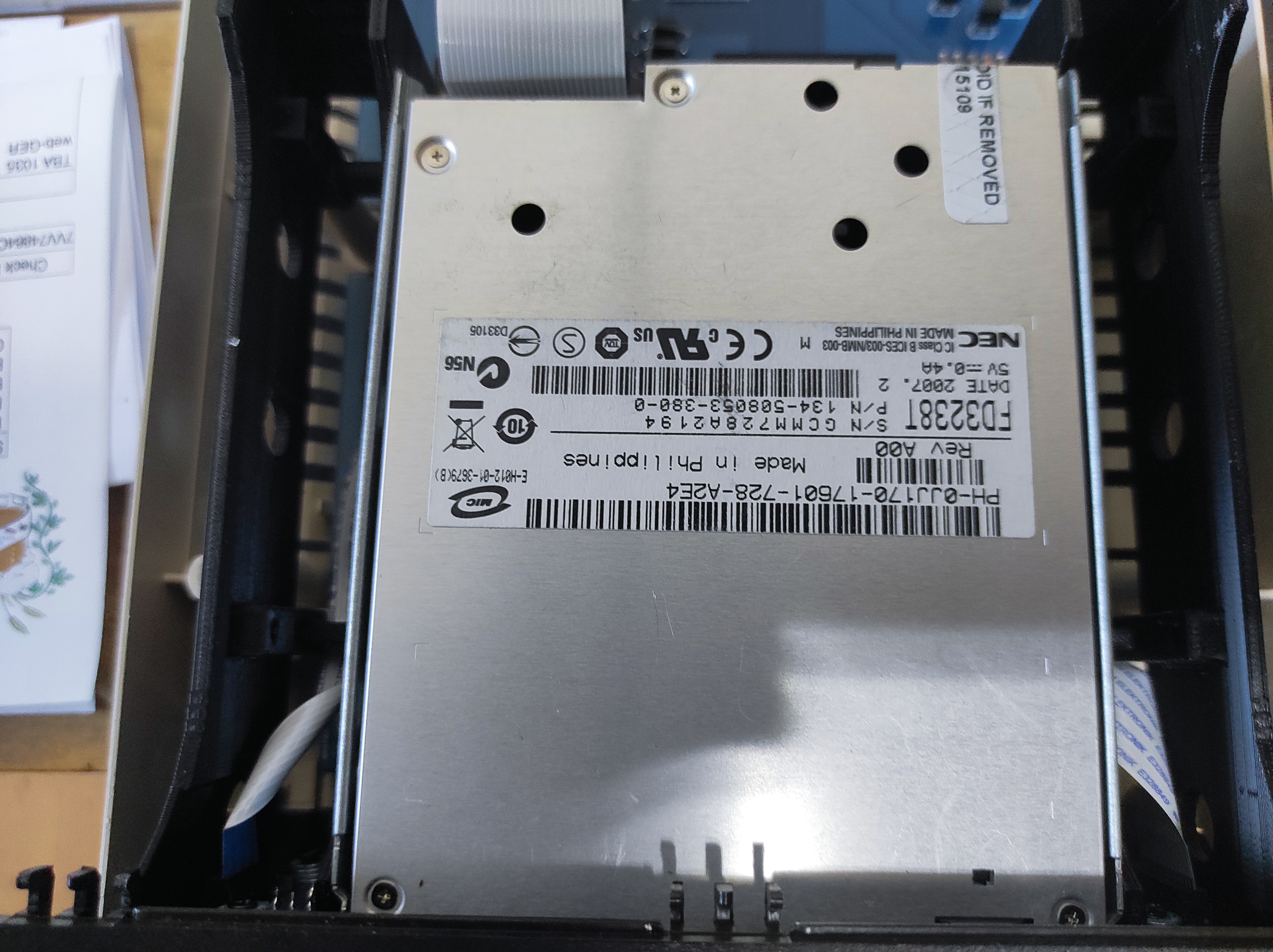 Die Frontblende ist 3D geprintetd. Im inneren des Laufwerks verbirgt sich eine Mytek Dropcheck XF Platine by Gramblicka, Posiu 1035 V1.5c 2020