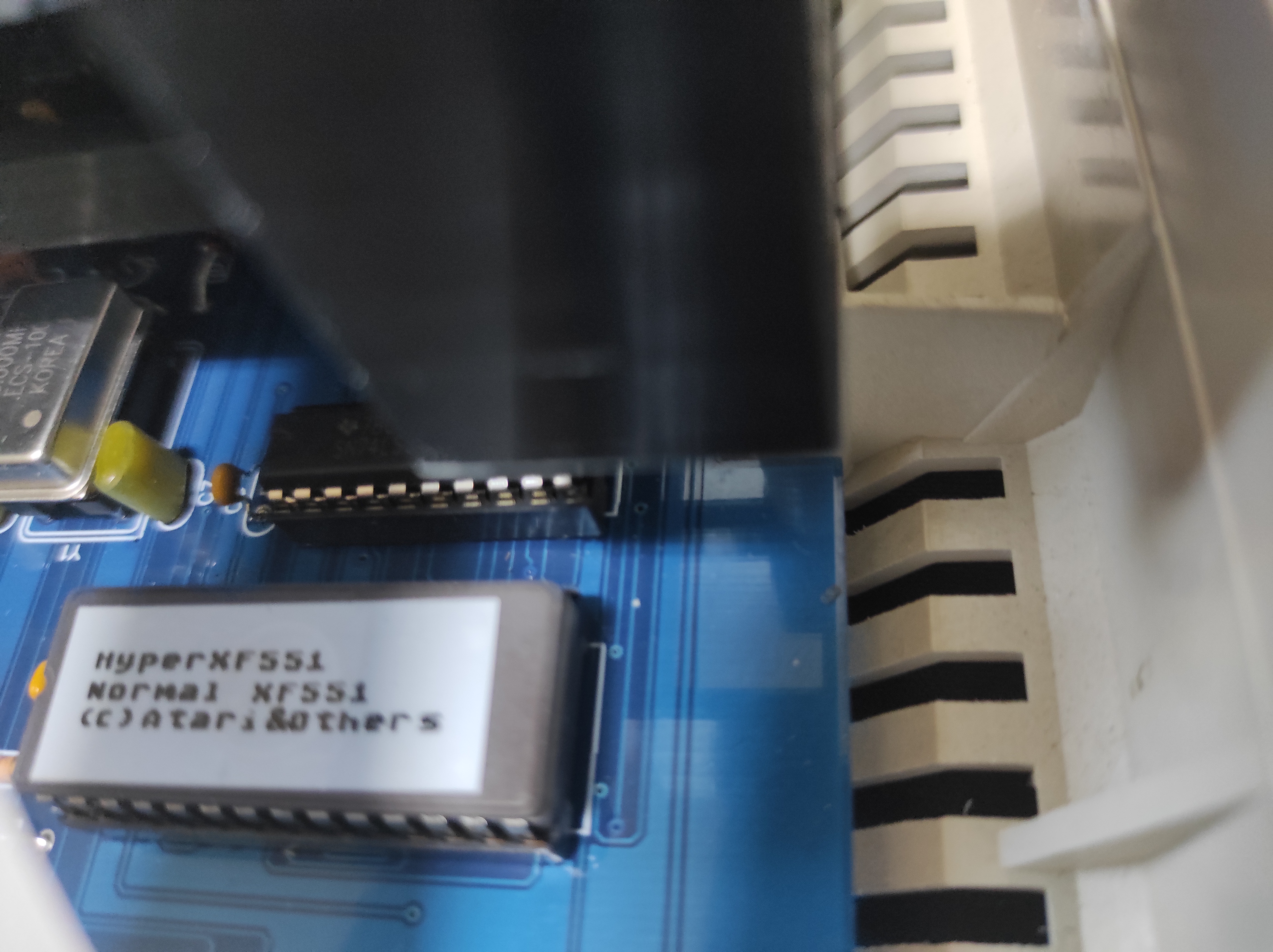 Sowie ich das anhand Deiner Bilder gesehen habe, ist Hyper-XF als Firmware drauf. Hyper-XF läuft problemlos mit PAL und NTSC. Die Original XF551 Firmware jedoch nicht! Da braucht es für NTSC und PAL unterschiedliche Versionen. Das hat nichts mit dem Quarz auf der Platine (8,3333 MHz) zu tun, sondern mit den leicht unterschiedlichen bps-Raten des POKEYs bei PAL und NTSC Systemen.
