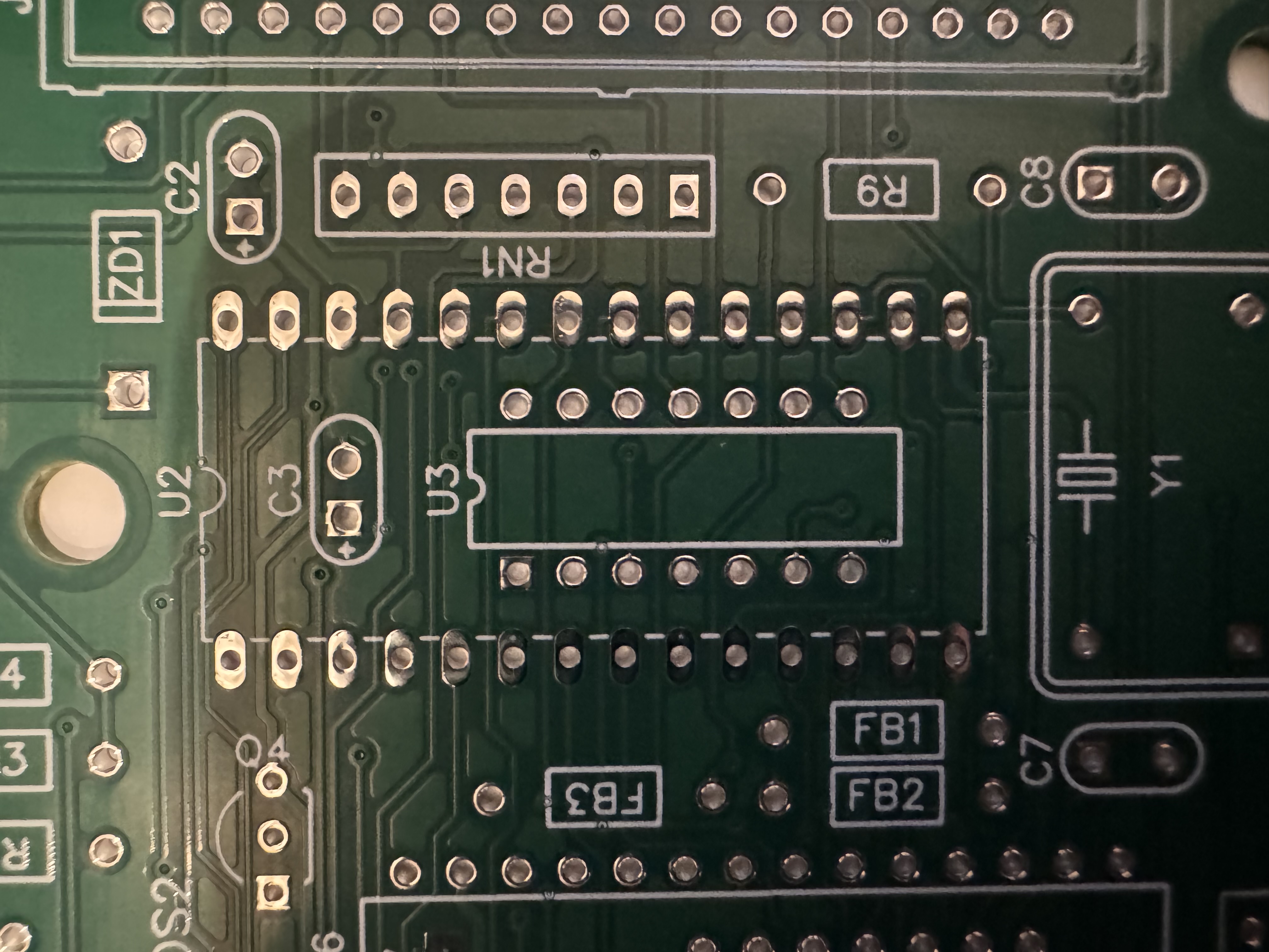 Please note the in-pcb contacts for Y1 (zero hight socket).
