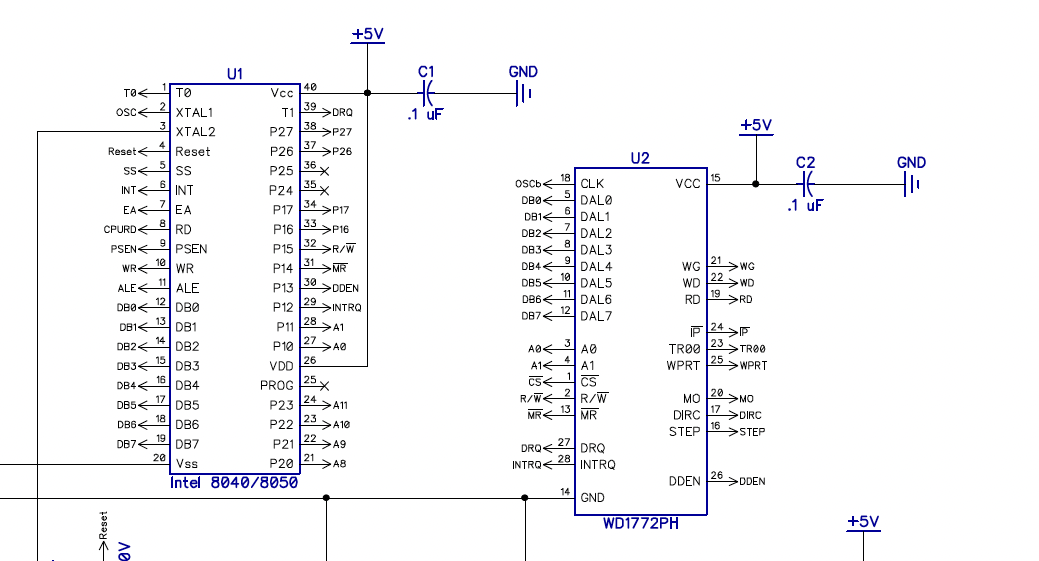 PS: Den Fehler in der Stromversorgung sehe ich auf dem Schaltplan, aber die falschen Verbindungen zwischen FDC und CPU nicht. Wieso gibt es dann diese Fehler auf der Platine?