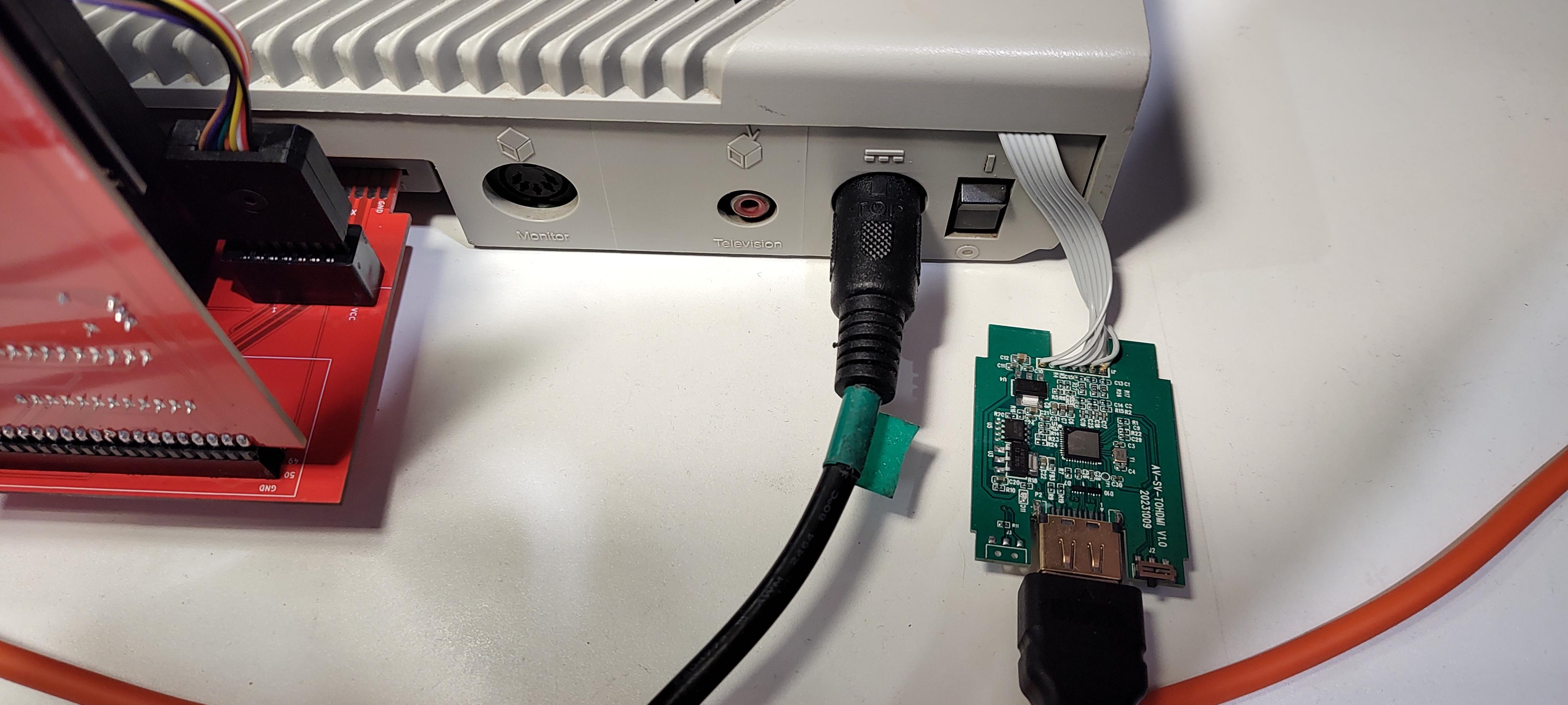 I described whole process on my page... Actually the grey ribbon cable is not necessary - you may use the original one cable after cut plug. So it's much easier process :-) My colleague KKRYS is under development special holder for scandoubler's PCB and we ordered a few HDMI sockets for tests...