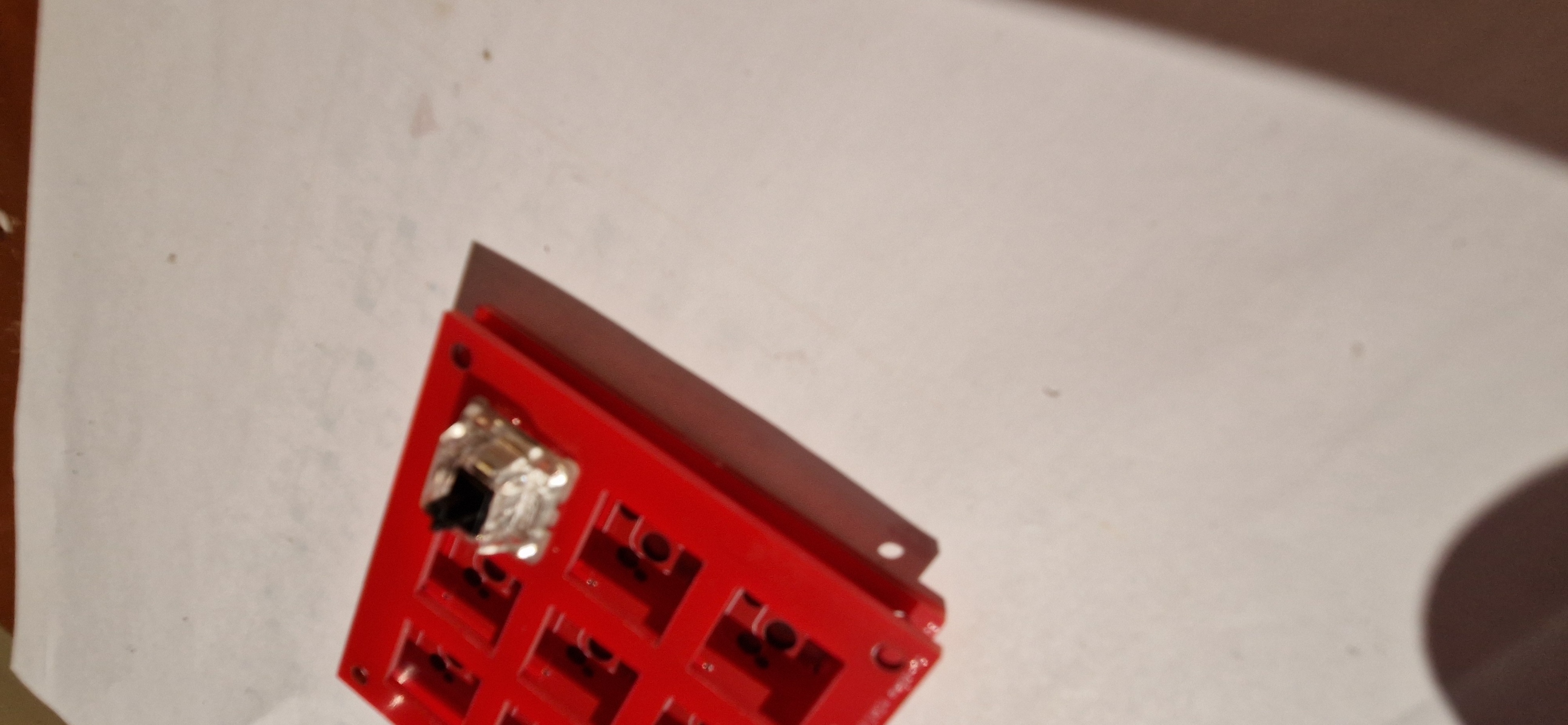 Wer eine Tastaturplatine mit Halteplatine (funktionierender Prototyp) ohne LEDs haben möchte und sich nicht scheut, an den unteren Ecken etwas wegzudremeln