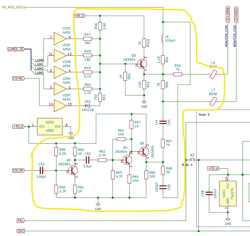 Das mit Abstand beste Bild erhält man wenn man auf das Composite (FBAS) Signal verzichten kann und nur SVideo Nutzt, dann einfach C54 weg lassen (oder mit Schalter abschaltbar machen; das habe ich gemacht).....