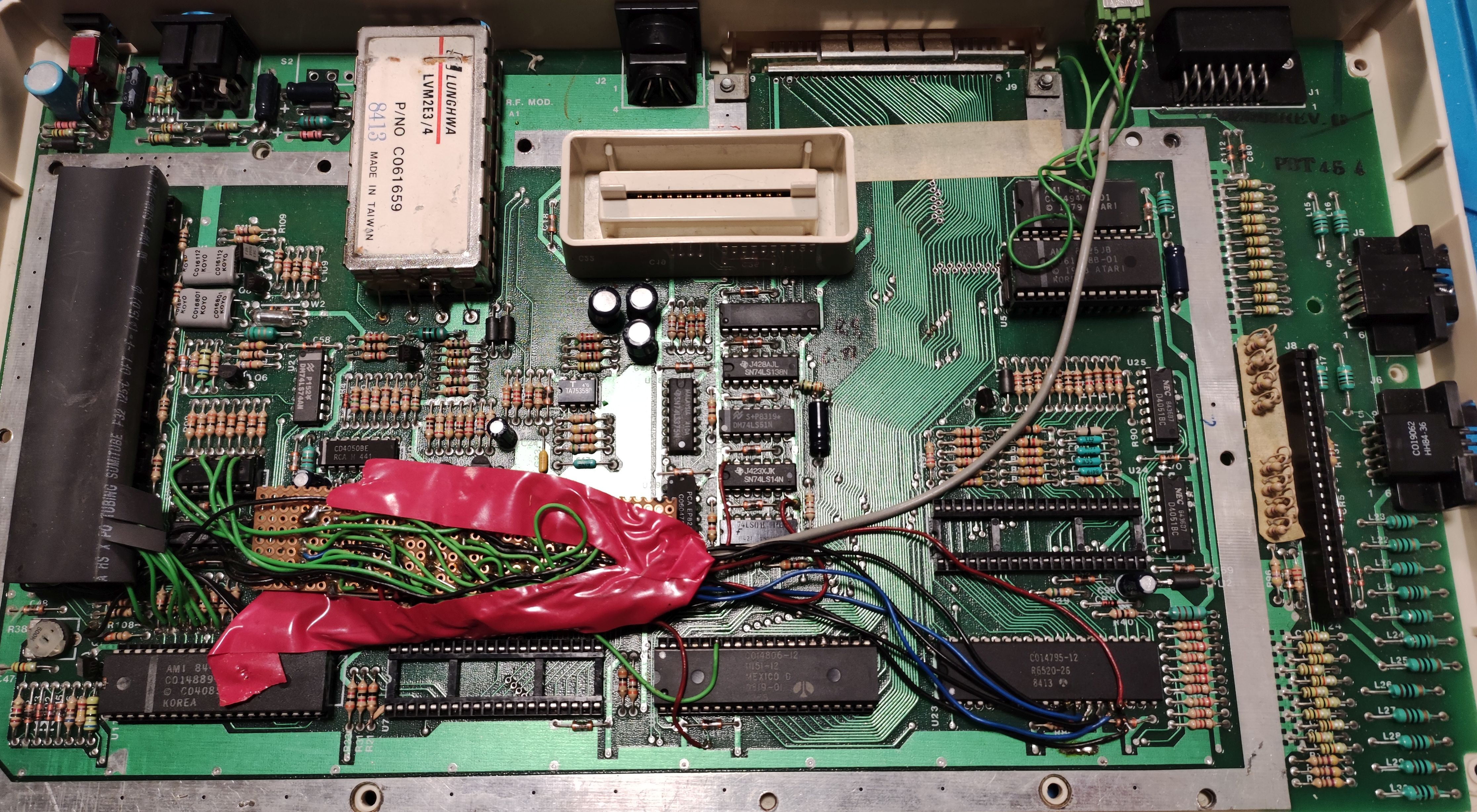 Ach ja, den RF-Modulator habe ich gleich von vornerein weg gelassen. Zum einen benötige ich kein Antennensignal und zum anderen kann man den Platz gut verwenden, wenn man mal eine Erweiterung einbauen möchte.