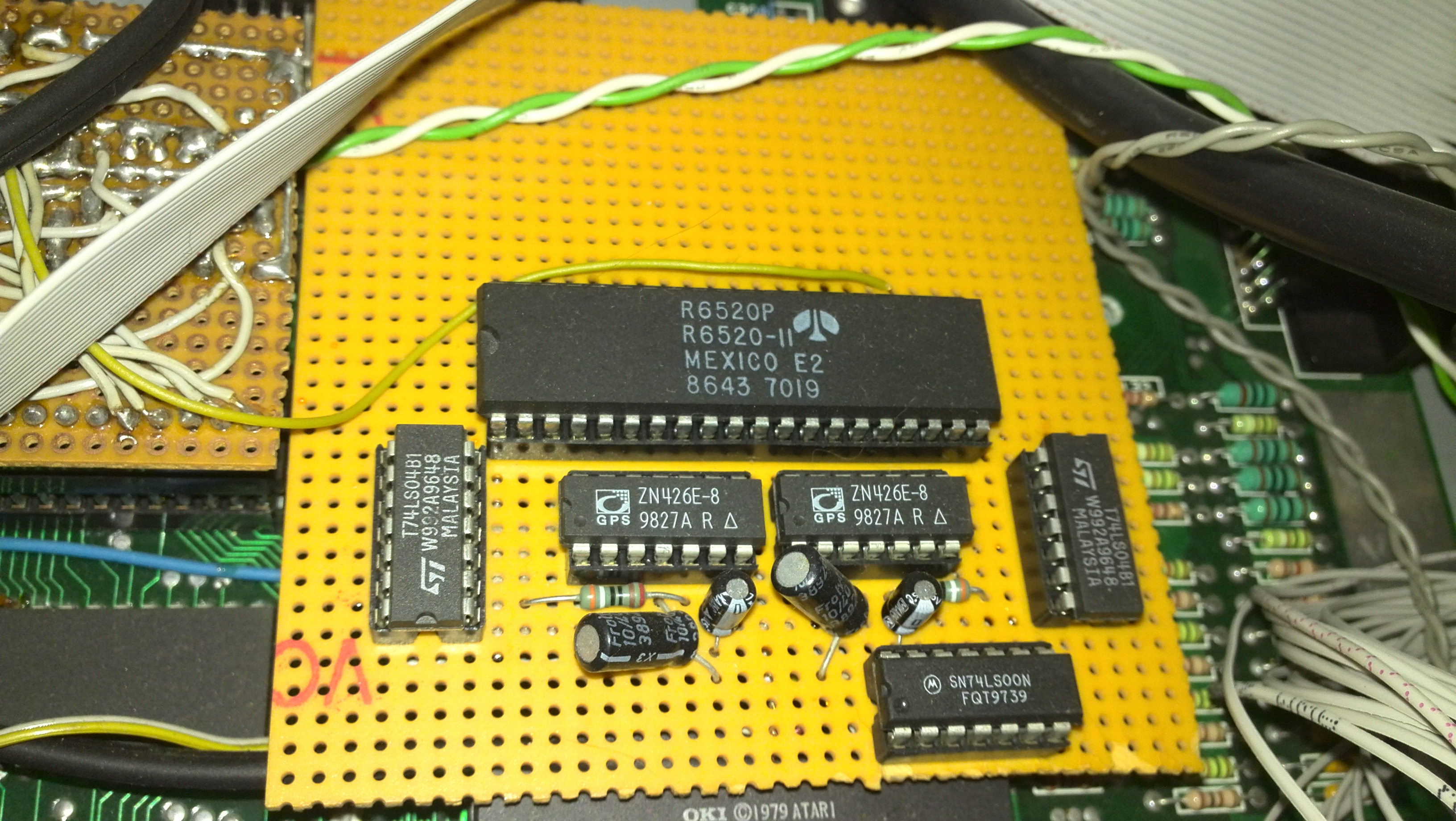 - Dual ZN46E (Stereo), 2 vollwertige 8 Bit D/A-Wandler via zusätzlichen 6520 (mit eigener Adressierung, relativ simpel über 2x 8-Bit Komparatoren 74ALS520 auf adr: $D600/$D601)