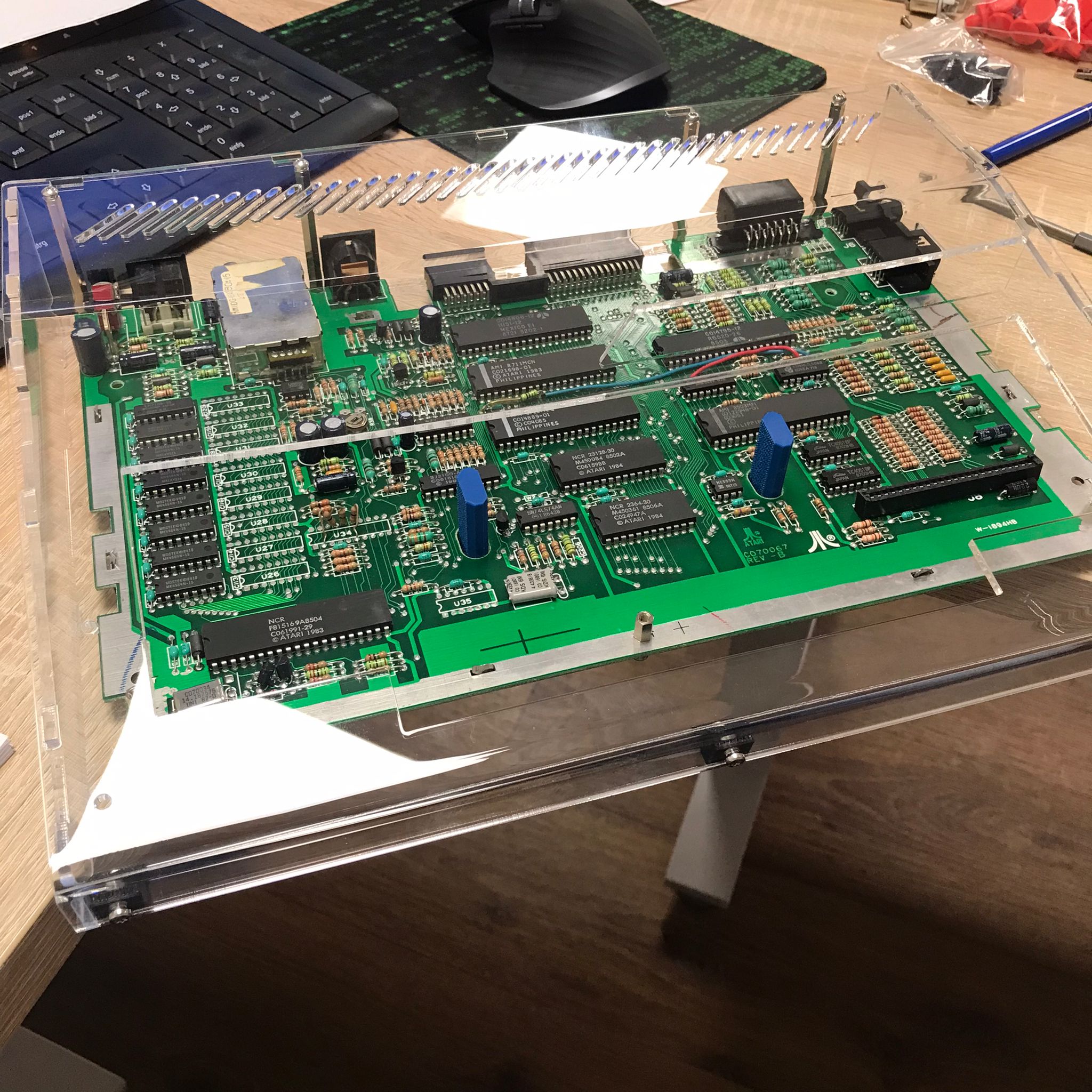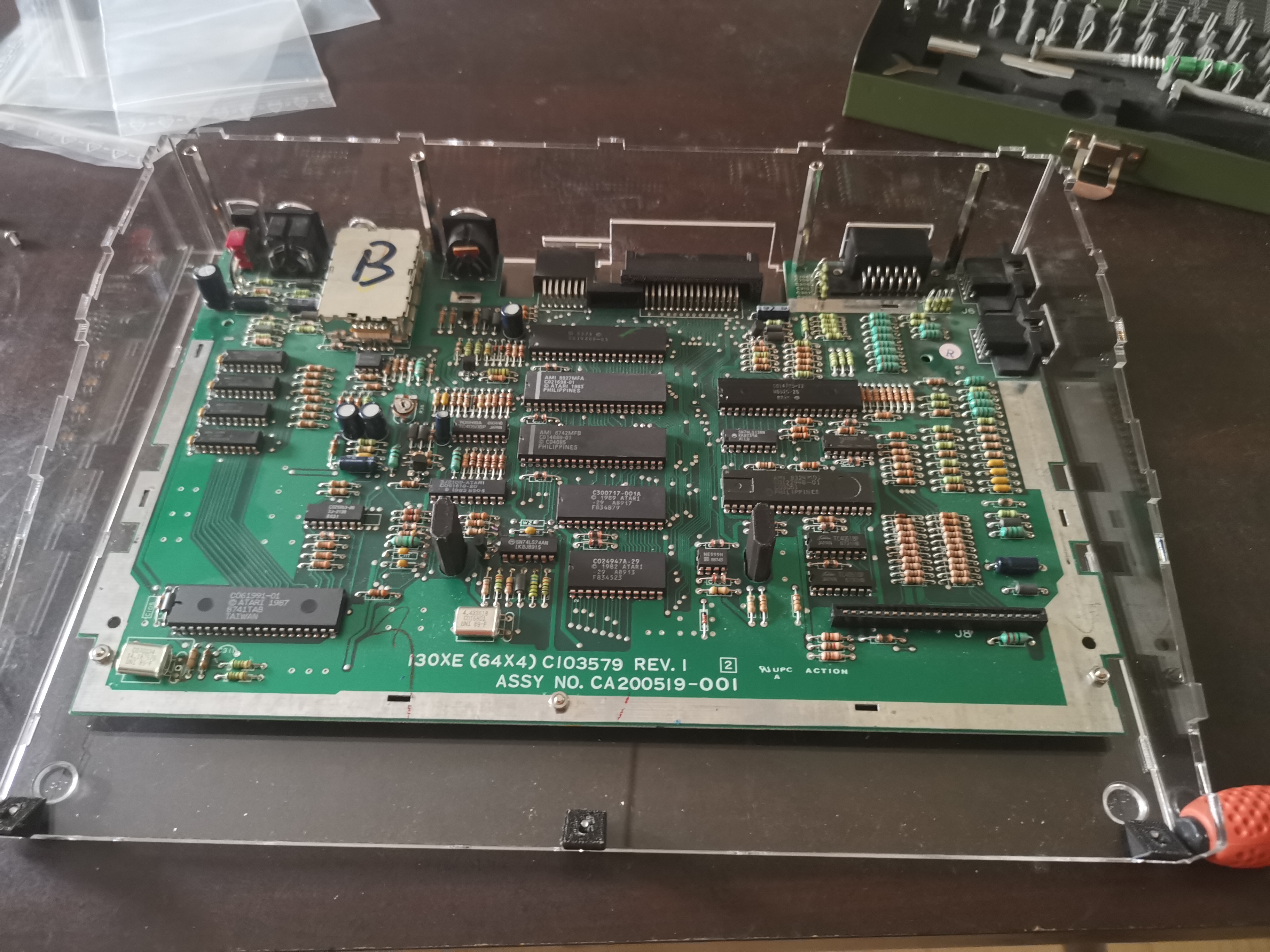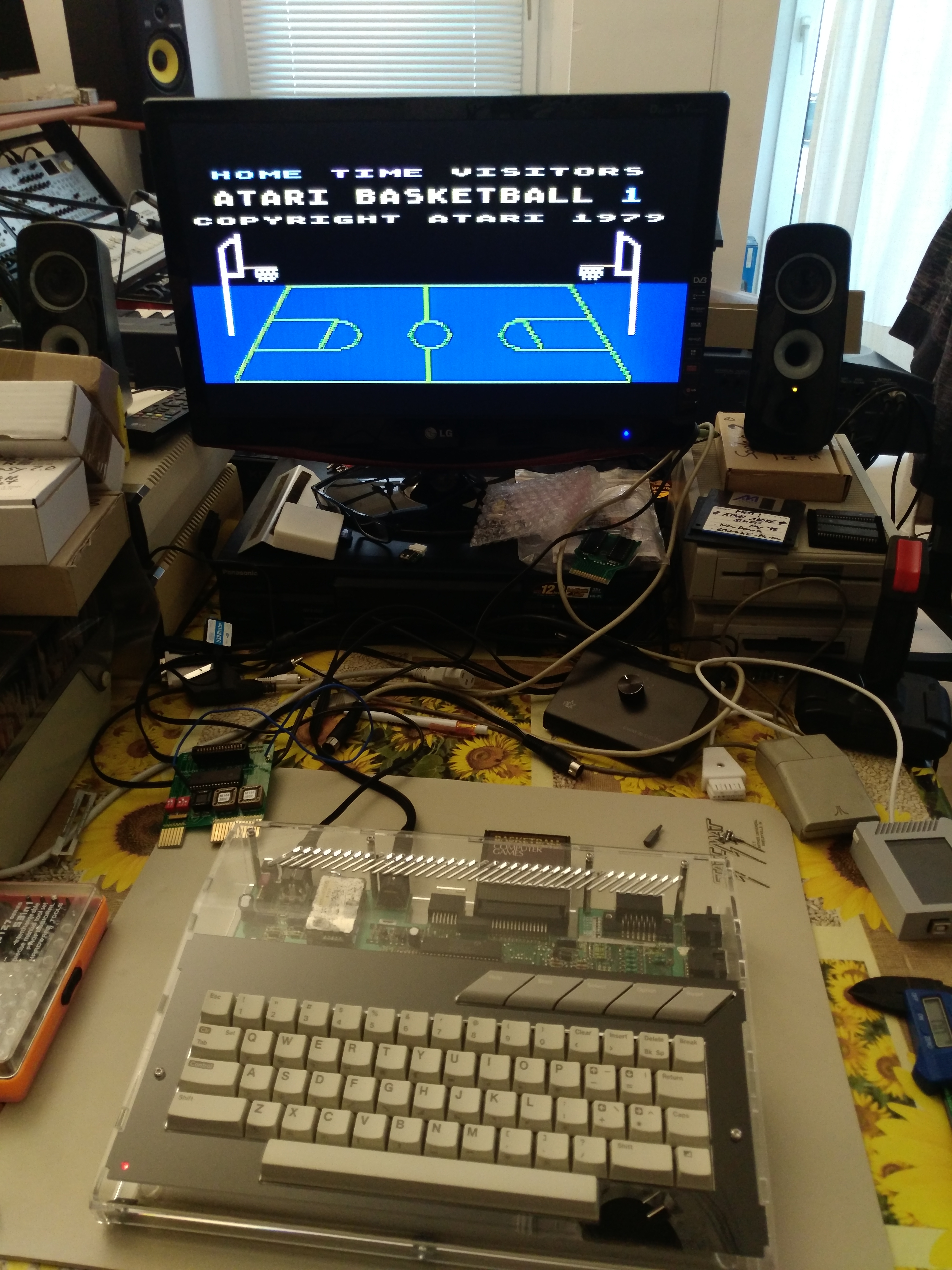 Schnell mal zusammengebaut und die XE Remake Platine provisorisch eingebaut