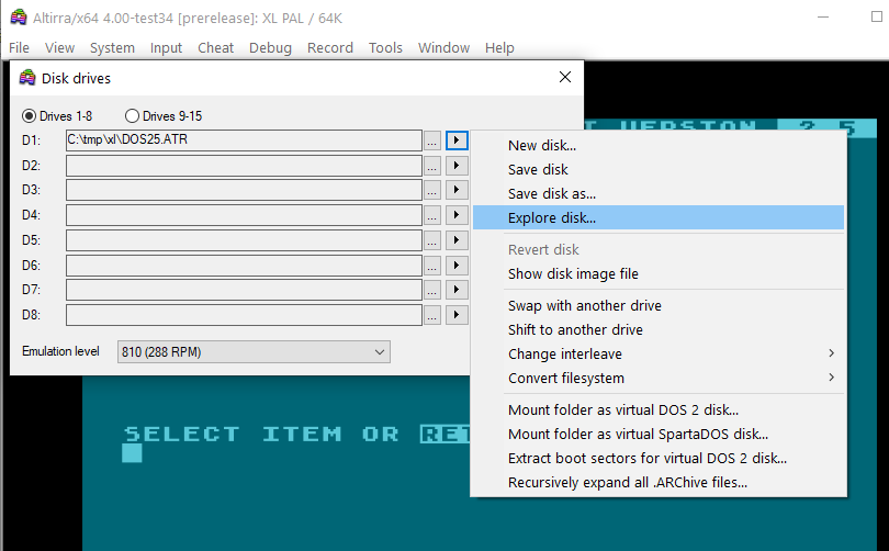 4. Datei per LIST "D:NAME.LST" auf atr-Image speichern