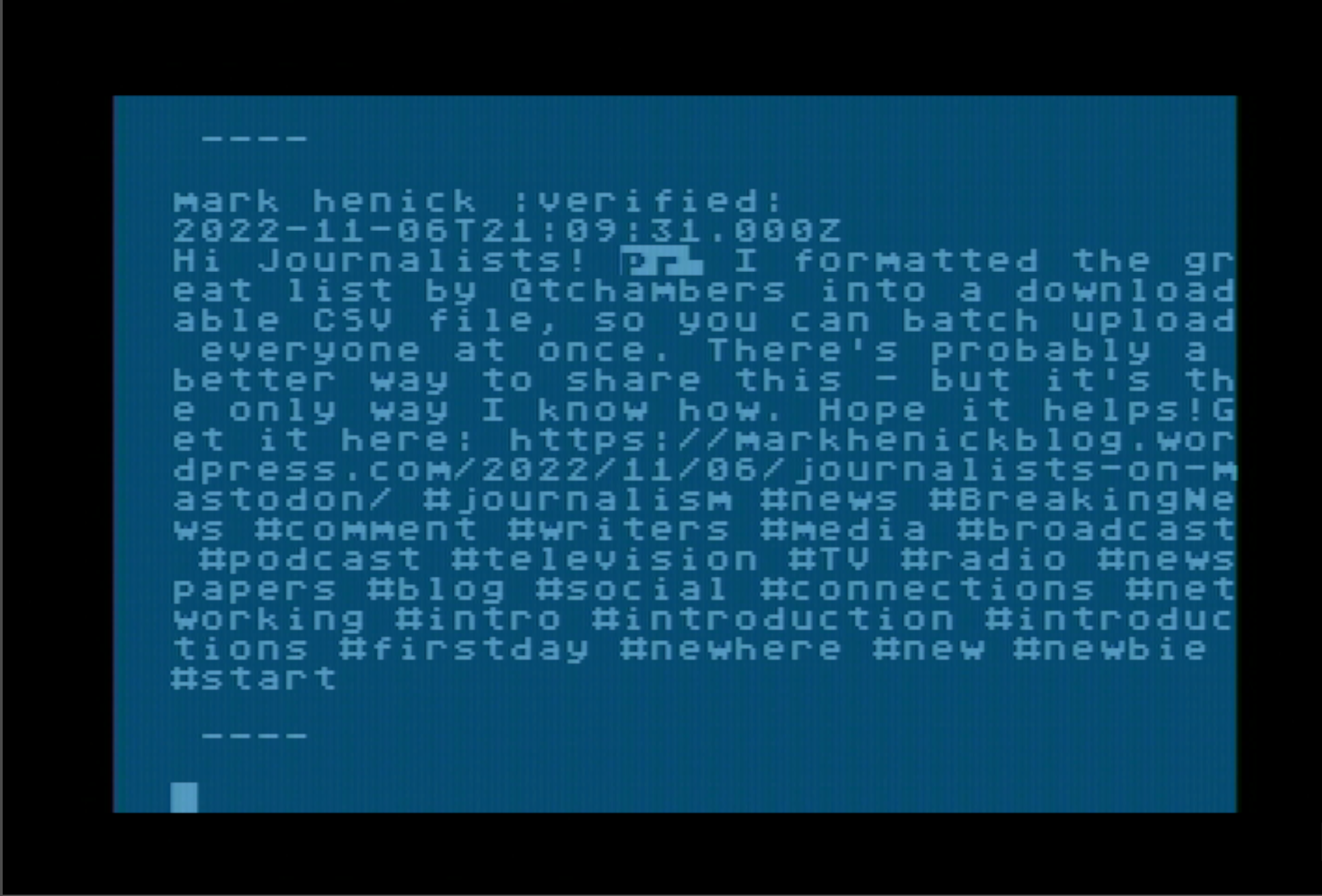 An upcoming release of dmsc's FastBASIC for #Atari8bit will include commands for #Fujinet! One of the example programs is a simple @Mastodon client!