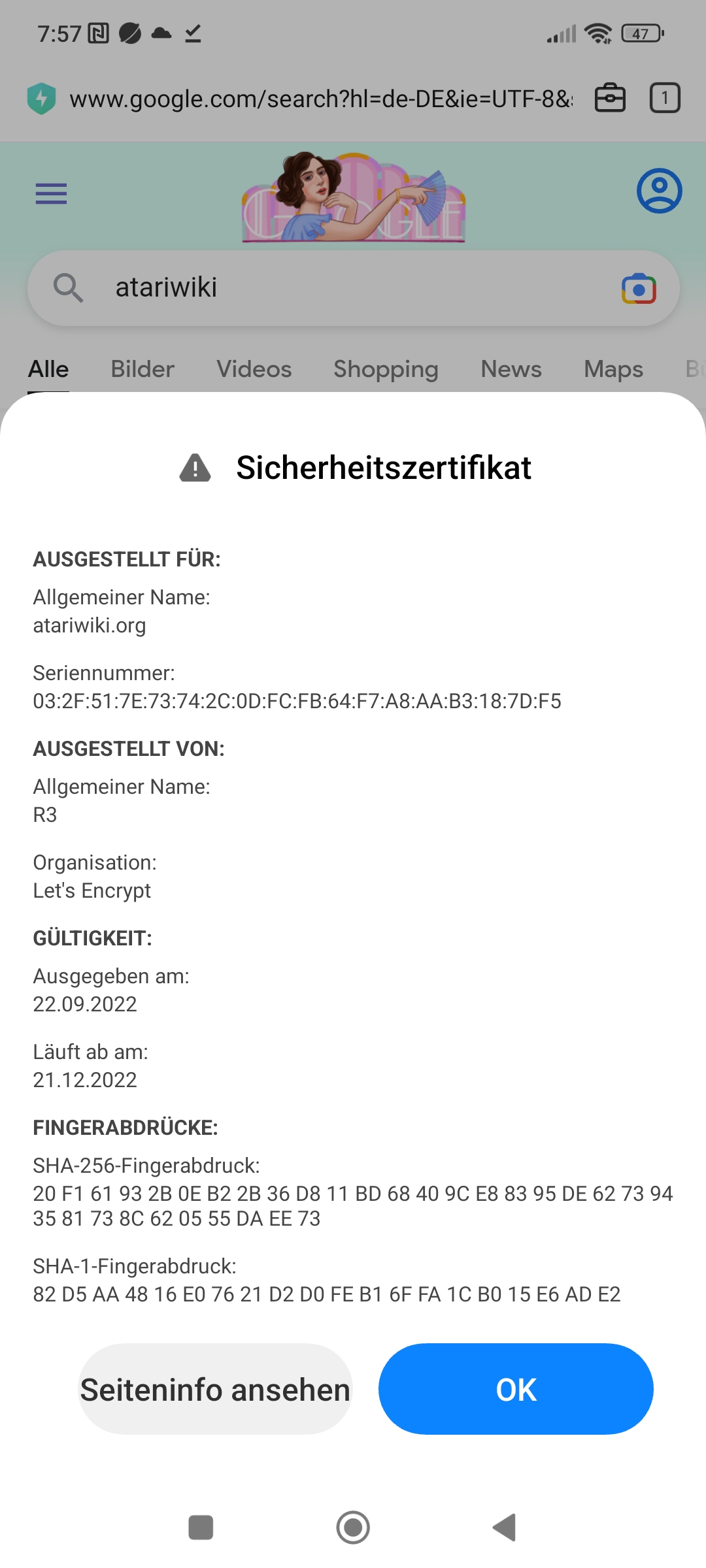 AtariWiki ist seit ein paar Tagen nicht mehr erreichbar! So wie es aussieht ist das Zertifikat seit dem 21.12. abgelaufen...