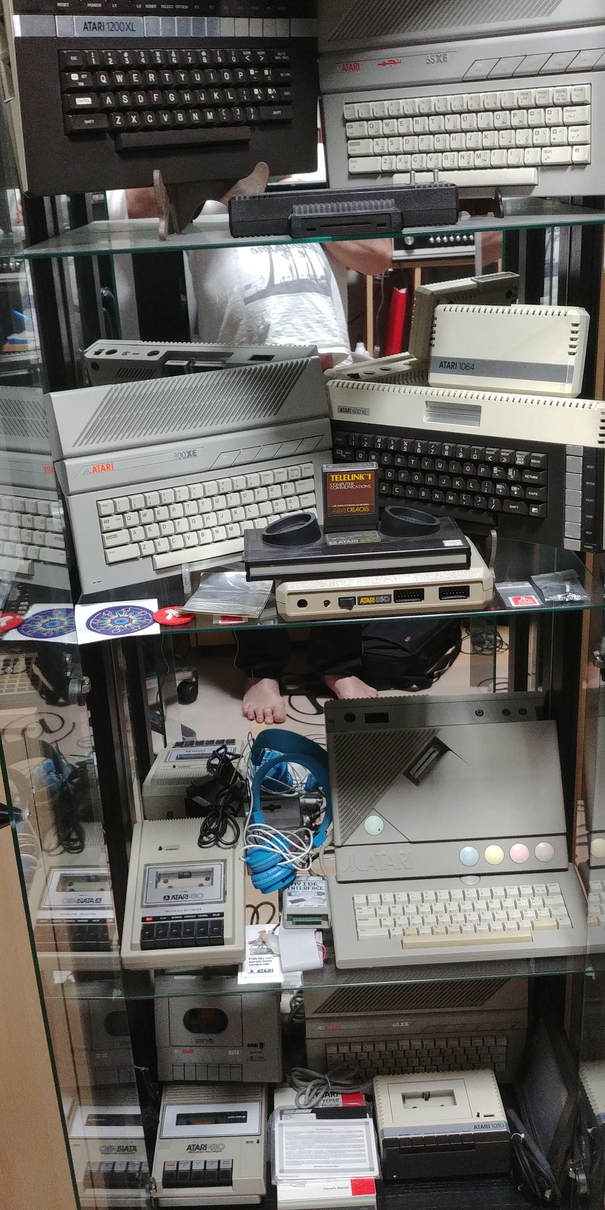 Übrigens steht auf einem der Glasschränke obenauf versteckt ein TI99 mit Flascart und allerhand Zubehör. Ich musste ja mal sehen, was die Atari-Konkurrenz so konnte...