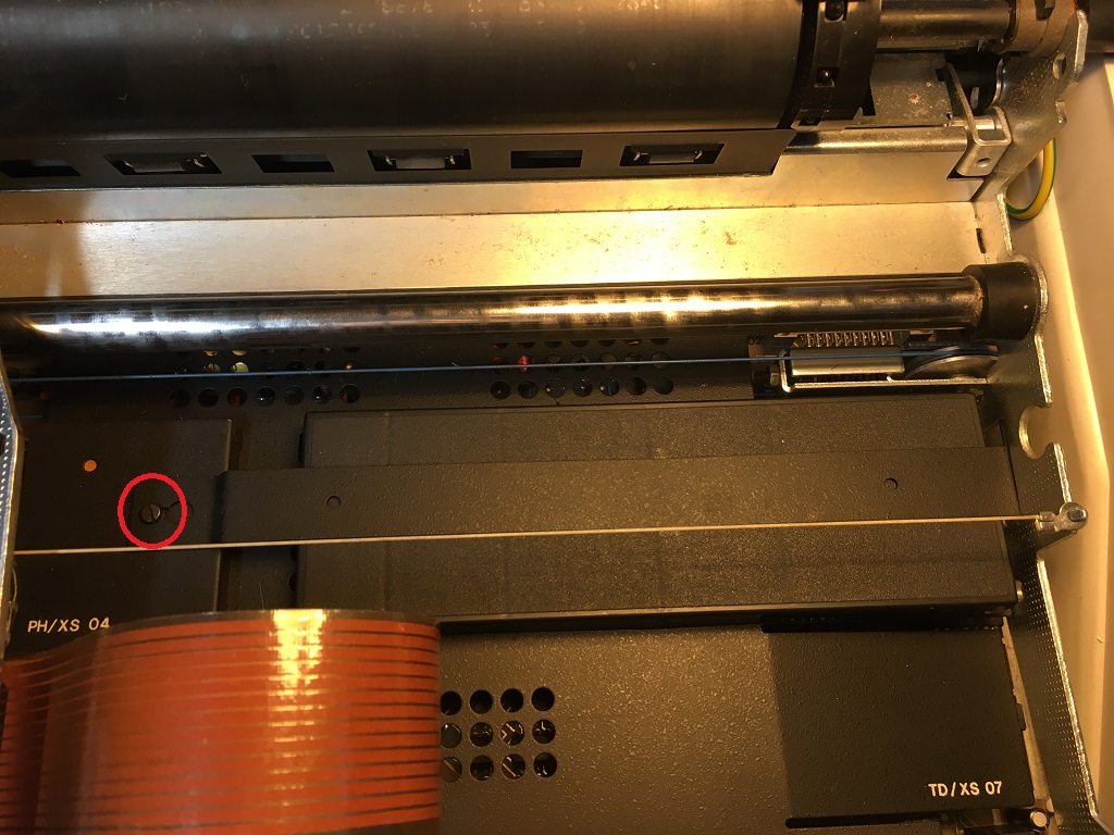 Dann lag im Drucker noch ein Seil mit zwei Ösen am Ende und der Transport vom Farbband funktionerte nicht.
