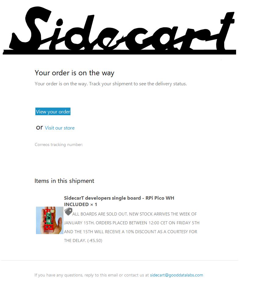 Seit heute Mittag gibt es 10% Rabatt auf das SidecarT. Wer also eines, oder mehrere möchte, kann genau jetzt zuschlagen. Gerade ist zwar kein Board erhältlich, aber am 15.1. gibt es neue, und bis dahin gibt es 10%.