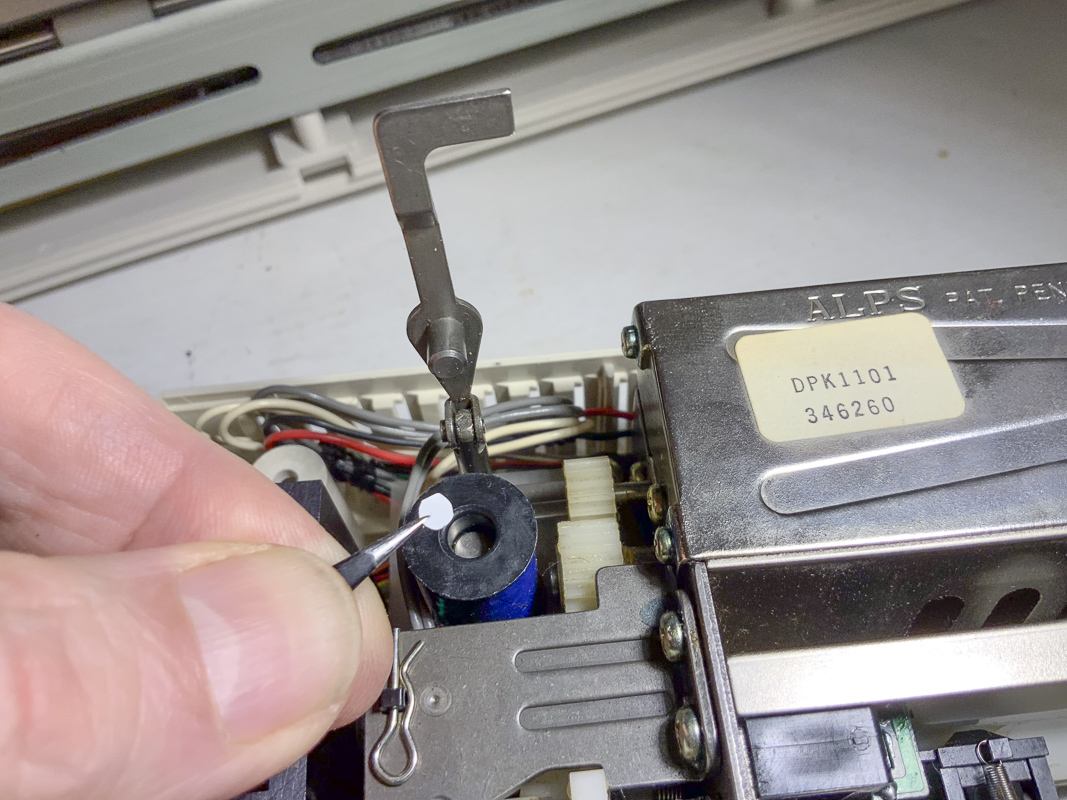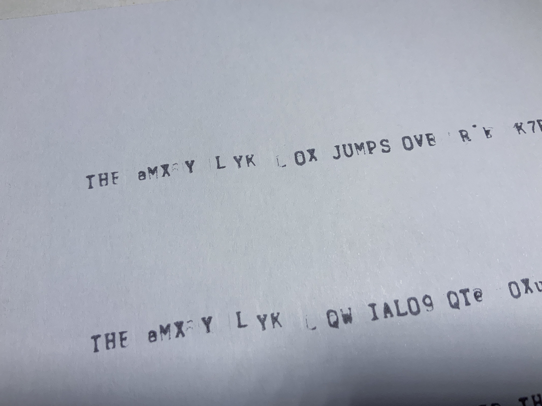I've installed the new rubber into my 1027 and because of "jumpy" characters at random placed, replaced the old paper separator inside the bobbin and tried printing.