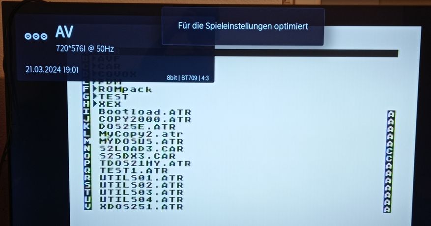 Mein 139cm LED-TV von Hisense hat Cinch Anschlüsse, mit den Kabeln vom Abbuc Shop (Monitor auf Cinch/Composite) ist es ein leichtes den A8 direkt daran anzuschließen, ganz ohne jeglichen HDMI-Konverter! Der TV schaltet bei mir dann auf 720x576i @ 50Hz und macht ein recht brauchbares Bild.