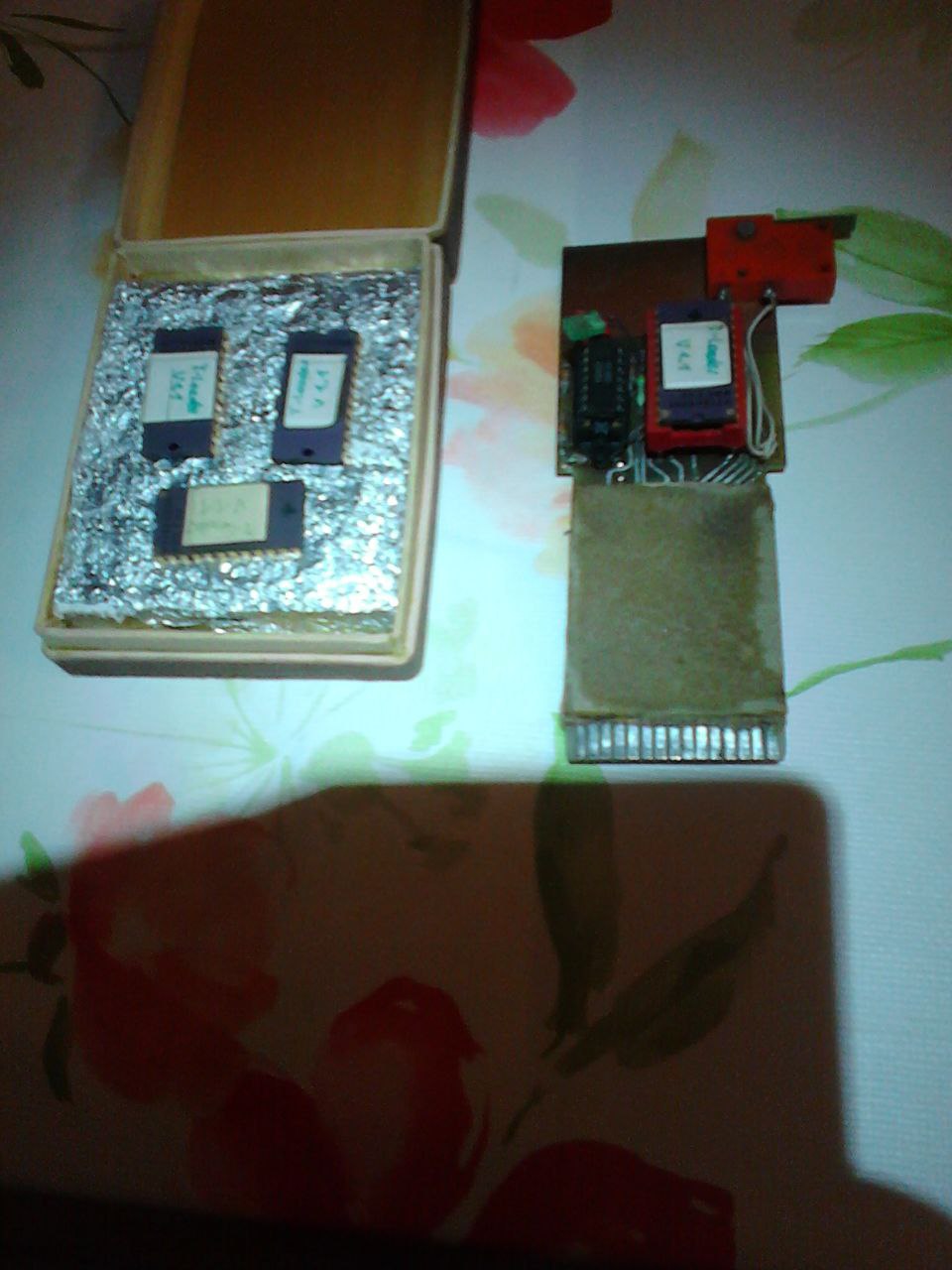 Auf diese Frage, kann ich keine wirkliche Antwort geben. Nach dem Foto (weiter oben) sieht es nach rus. 2K oder 4K EProms aus .. vergoldete Pins. Seit ich diese Eproms/ Modul das letzte Mal in der Hand hatte (2018/19) hat sich die Erde weiterbewegt. Ich muß nun warten, bis sie wieder vorbei kommen. Mit anderen Worten, keine Ahnung wo die Teile liegen.Was für ein EPROM ist das denn genau in dem Modul?